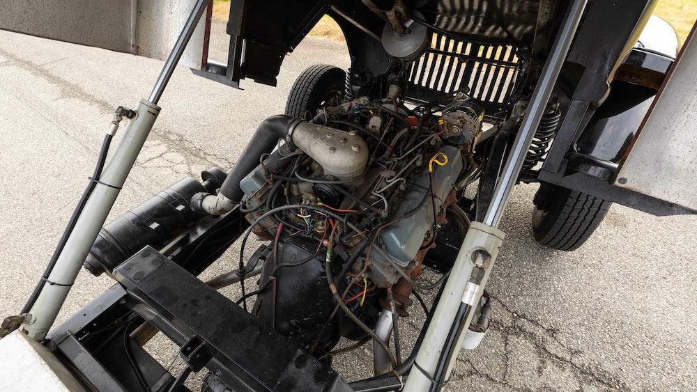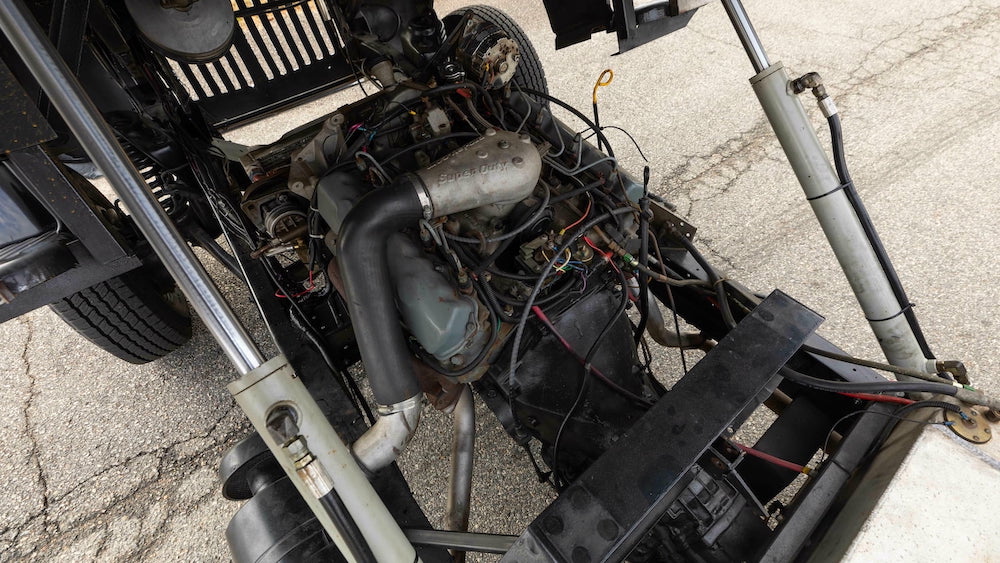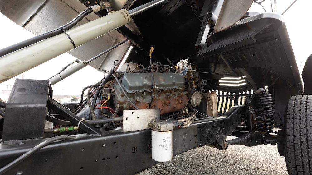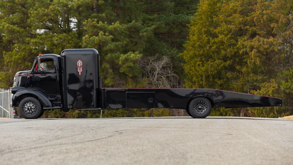 In any event, this vintage COE stands on its own thanks to smooth bodywork covered in black paint, custom pin striping, a custom aluminum bumper and side mirrors, a chrome grille, and some modern wheels wrapped in beefy rubber. This truck isn’t all about style, however – it was also built to work, with the addition of a winch, cab raising pistons for easy access to the engine, and a beefier brake booster.