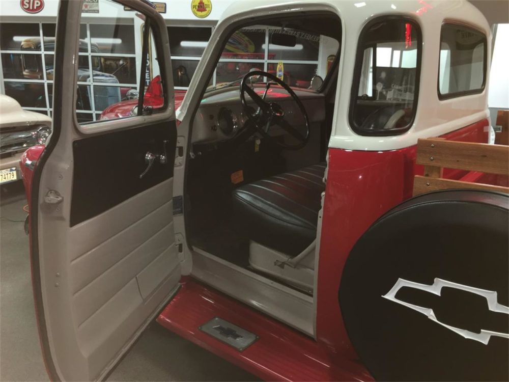 From the red and white two-tone paint to the steelies and white whites, you won’t find any signs of manual labor here. A perfectly stained wooden bed and stakes proudly display that iconic Coca-Cola logo. The chrome shines like new, and like all the original trim, is still intact. A seldom seen Hydromatic automatic tranmission makes the already rare five-window even rarer.