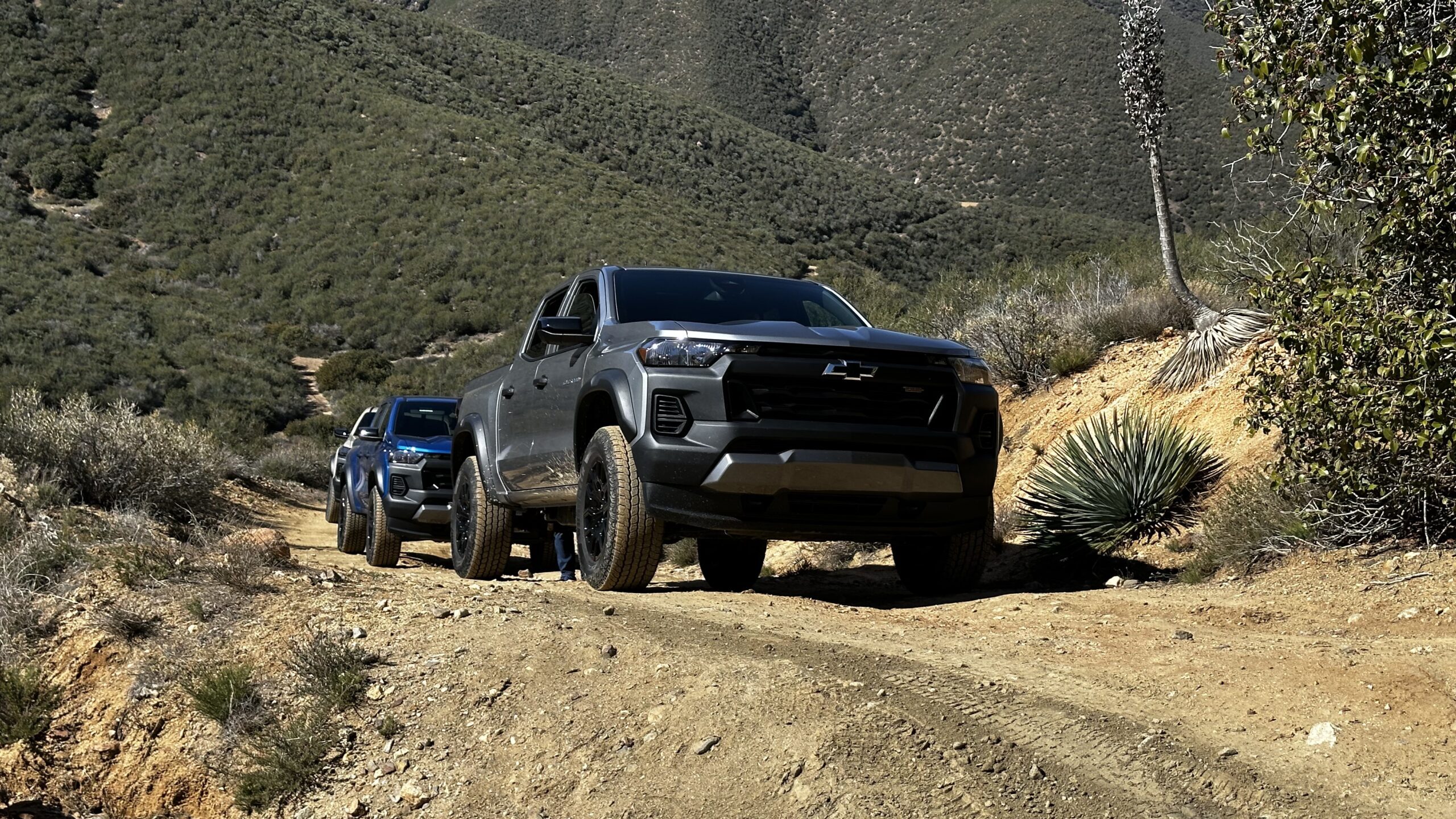We took both of these trucks over to trails near the ever-scenic Volcan Mountains in Julian, California. With the exception of the LT and WT, the L3B motor comes with 310 HP, 390 lbs.-ft of torque on 87 octane (yes, you read that right), and up to 7,700-lb. towing capacity, thanks to a well-tuned and finessed 57-inch Borg Warner turbo.