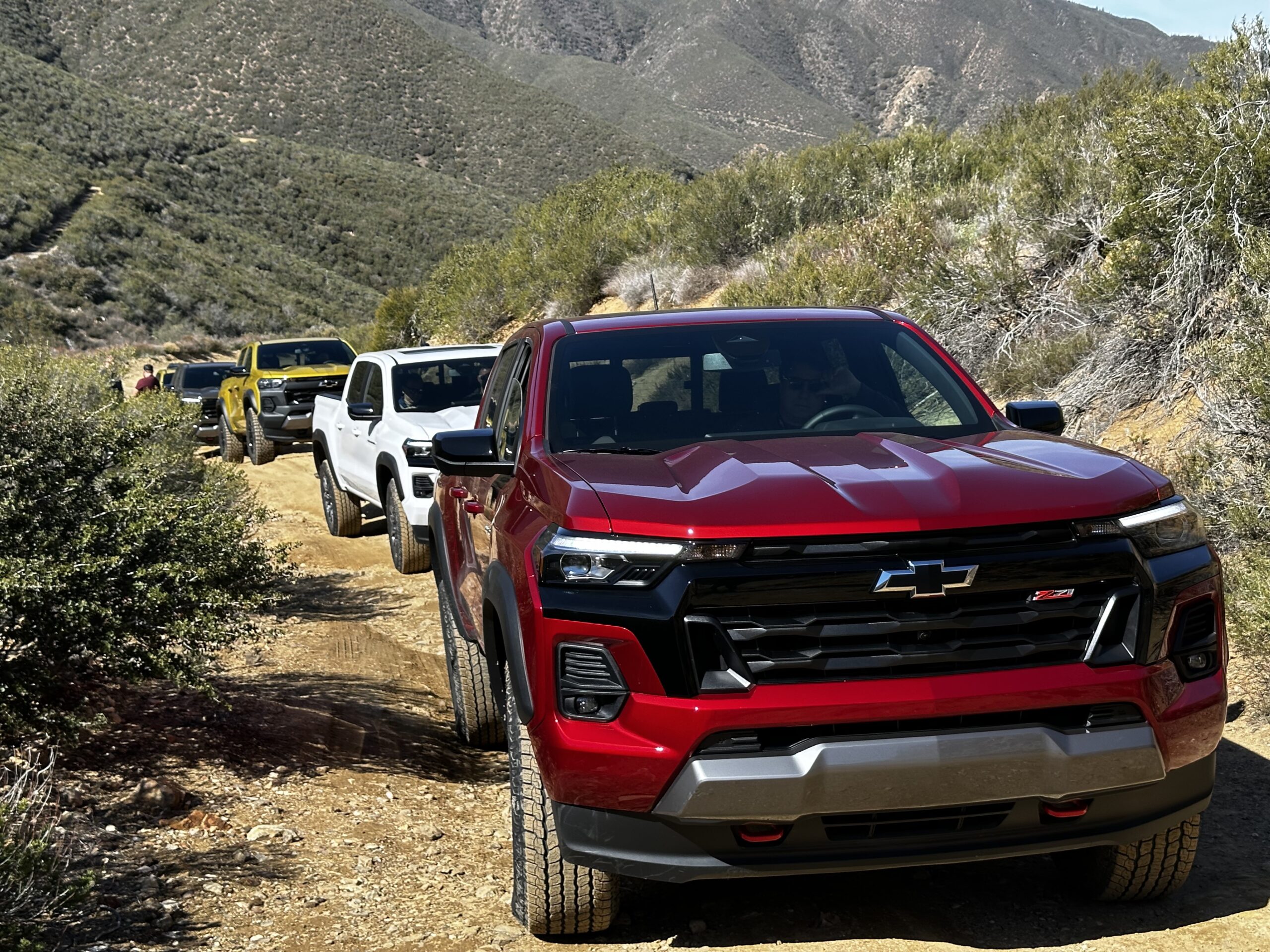 Both trims proved their mettle on the rocky, boulder-rich trails in different ways, despite sharing the same spec’d powerplant. The Z71 comes standard with glossy 18-inch “Android Dark” wheels, however the Nitro Yellow Metallic Colorado I spent time with had the Z71 Convenience Package II ($1625), which has the 20-inch aluminum Android Dark offering wrapped in 20-inch 255/55R20 All-Terrain Bridgestone Duelers.