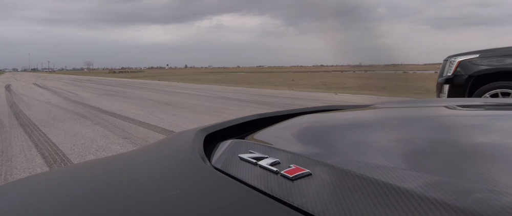 Are Hennessey’s enhancements enough to make the Escalade a 650-horsepower Camaro-killer on a drag strip? Watch and find out. No matter which vehicle loses, we all win as viewers.