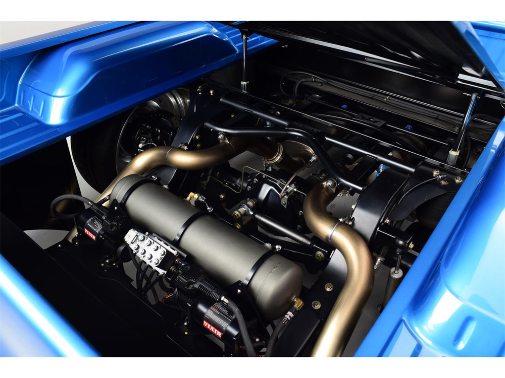We love a custom Chevy truck that respects its roots, and this slick road hugging C10 does just that. The wheels are a stylish design by Mike Curtis for Delmo’s Speed Shop, however, the Catalina Blue and Frost White are actually the trucks original colors. Syndicate Series 1 also has a crate LS3 decked out to look like a stock 350. On top of that, smaller items such as the custom aluminum air cleaner and steering wheel have been designed to look like they could be from the Chevrolet factory in 1974.