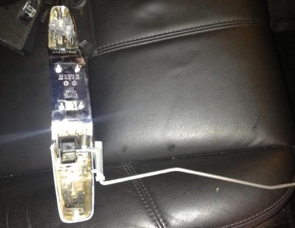 The final step to remove the handle of your Chevrolet GMT900 truck or SUV is to address the door handle rod. The OP in this DIY disconnected it from the latch assembly and pulled the whole thing up out of the door, but in some cases, you can disconnect the rod from the handle and leave the metal connector in the door while only removing the broken plastic handle assembly.