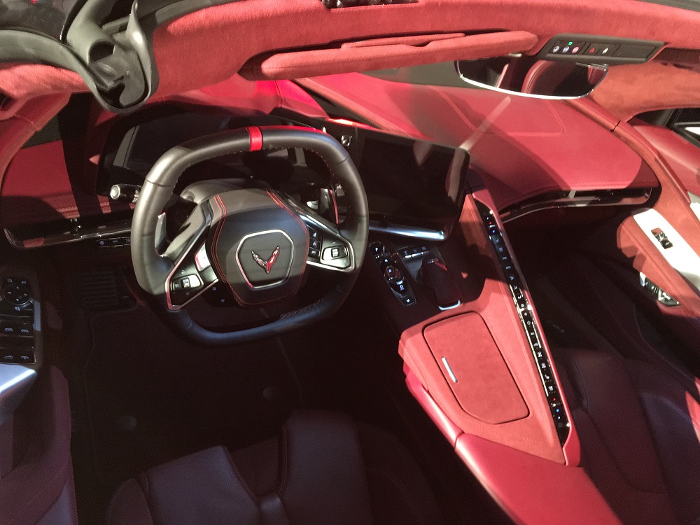 Inside, we see a very similar look as the C8 coupe. A lot of buttons, yes, but this is a driver-focused experience.