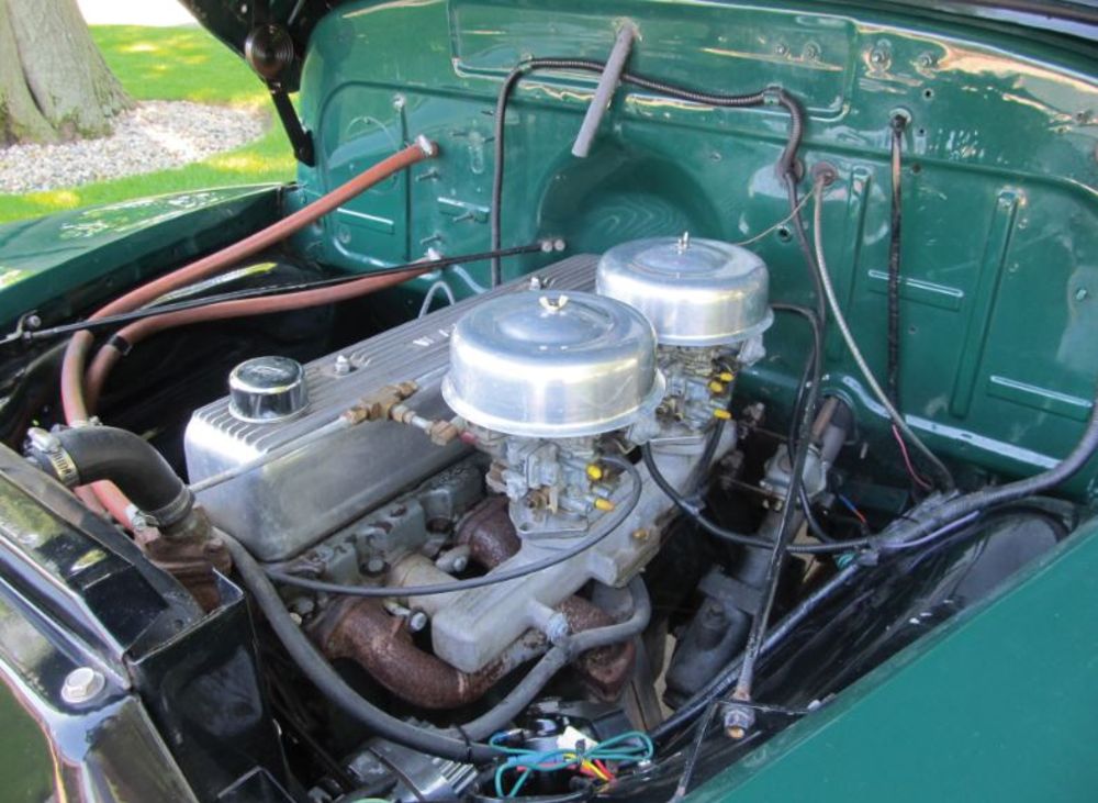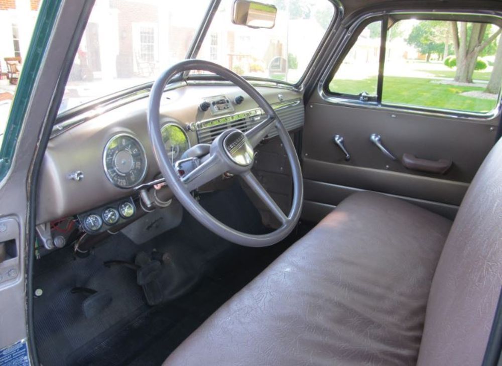 Much like its understated green exterior, this 1953 Chevrolet 3100 is similarly simple underneath. It’s powered by an inline six-cylinder engine, backed up by a three-speed manual transmission. Naturally, that transmission is shifted on the column, behind a wide, thin-spoke steering wheel.