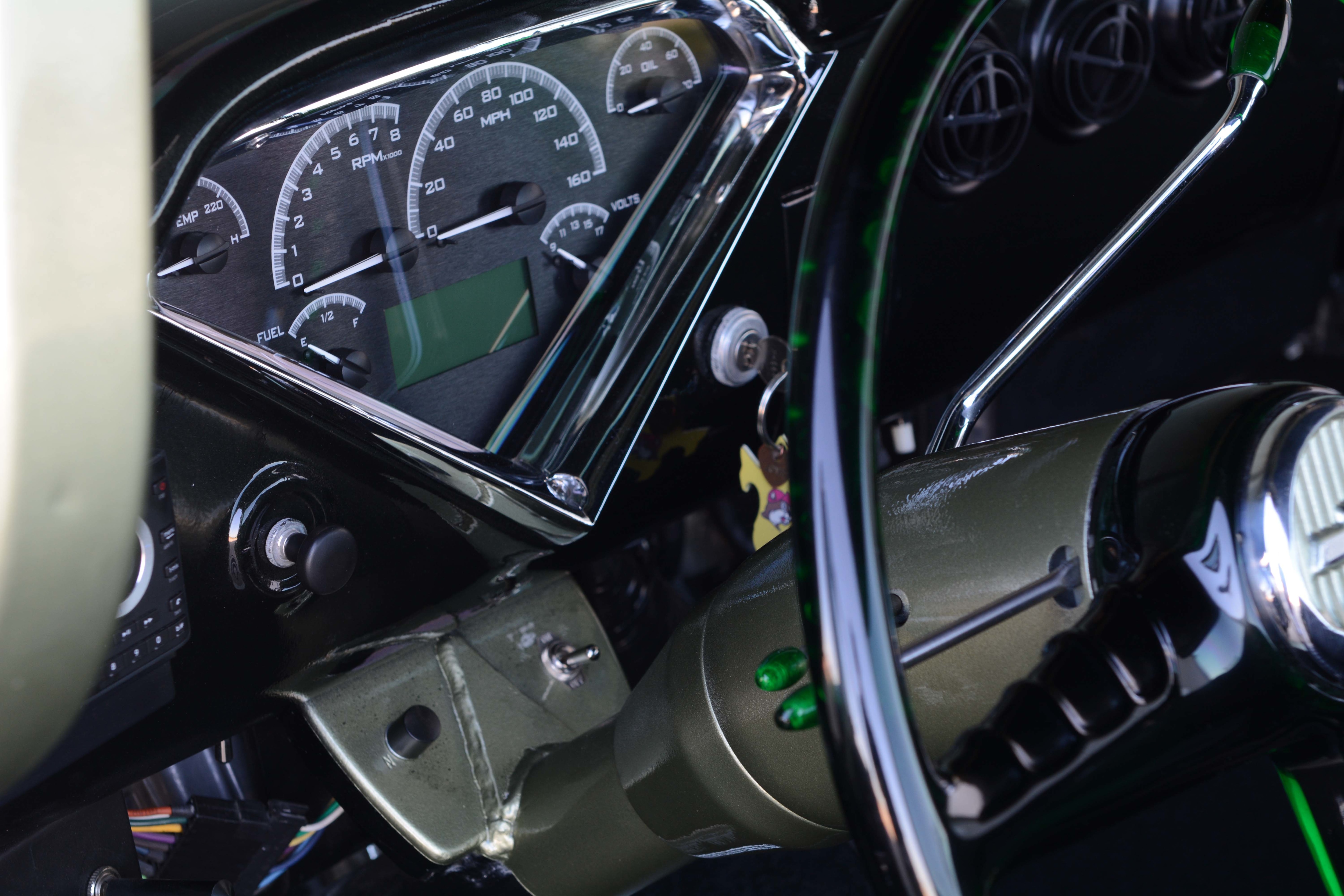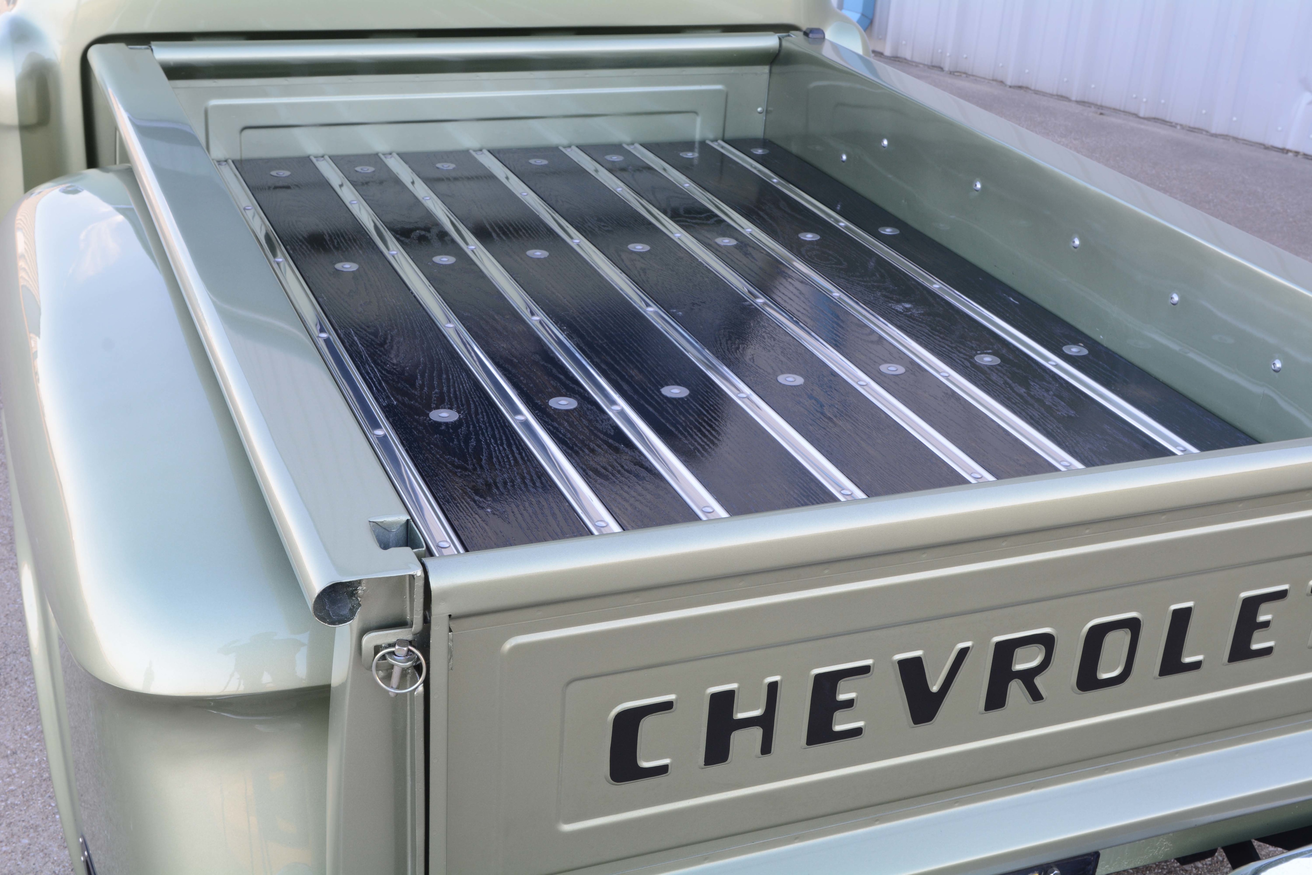 One of our favorite elements of this truck is the bed wood. The owner had the boards stained black and clear-coated with green pearl. The boards are held down by stainless steel straps that bolt to the structure beneath. It provides lots of opportunity for fun woodwork on any truck we’ve seen. Trappings of a bygone era we suppose.