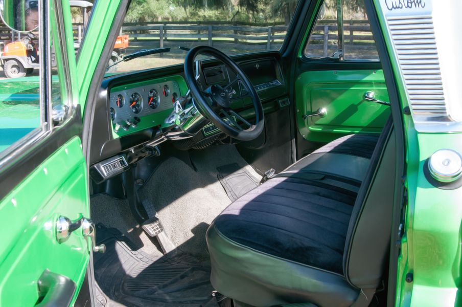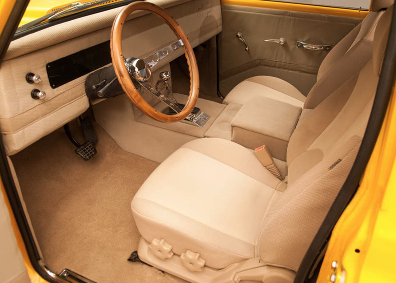 Also for sale at Leake Auction, this Chevy C-10 is a bold, badass pickup. It also happens to be a show truck, so the work put into it makes it a one-of-a-kind pro street and show Chevy. The 454 cubic inch big block V8 engine makes this yellow monster roar. Modded with a Edelbrock RPM air gap intake fed by a Demon 4BBL. It also has a custom chopped top, tubbed bed, March pulley system, serpentine belt with billet brackets and COMP cam timing cover, custom exhaust with custom performance headers and stainless steel exhaust to Magnaflow mufflers. This is definitely the right car for someone looking for custom style and power.