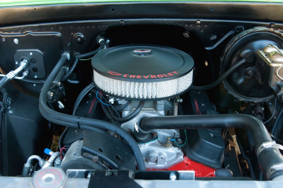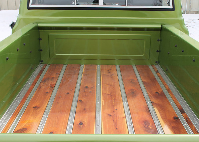 Carlisle Auctions is selling this 1966 Chevrolet C10, gorgeous and green. The C10 has a 350 cubic inch V8 with mild cam, automatic transmission, aluminum radiator, headers, new dual exhaust, and Edelbrock intake and carburetor. It has a relocated gas tank, new sleek wood bed, lowered suspension, staggered 18 and 20 inch wheels, four wheel disc brakes, power steering, Vintage Air A/C and heat, Autometer gauges, chrome tilt steering column, and digital radio. With less than 1500 miles since built, this pickup has a long and probably wild life ahead.