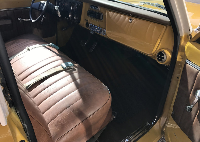 This Cheyenne is on the auction block at Leake Auction Company. With a 350 cubic inch V8, it’s got the classic small block engine that performs in a big way. This truck has power steering, an automatic transmission, power brakes, factory A/C, rally wheels, and great long bed. The two tone Ochre paint job gives us that perfect, classic Cheyenne look.