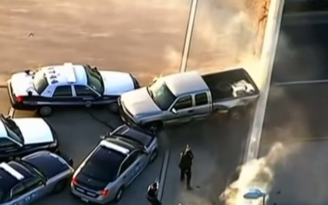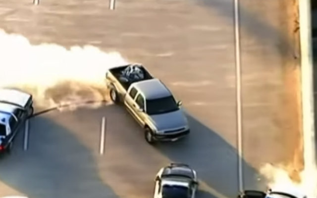 Though we don’t advocate running away from a ticket, we’d say that Lakisha did a pretty good job! Well, aside from being caught. Still, despite driving her heavy silver Chevy Silverado, with what appears to be bags of mulch in the bed, she drove quite well. She weaved through traffic, cut across a dirt median, drove on a concrete median, and then did some pretty hefty drifting there at the end. Maybe if she had a faster vehicle she would have gotten away!