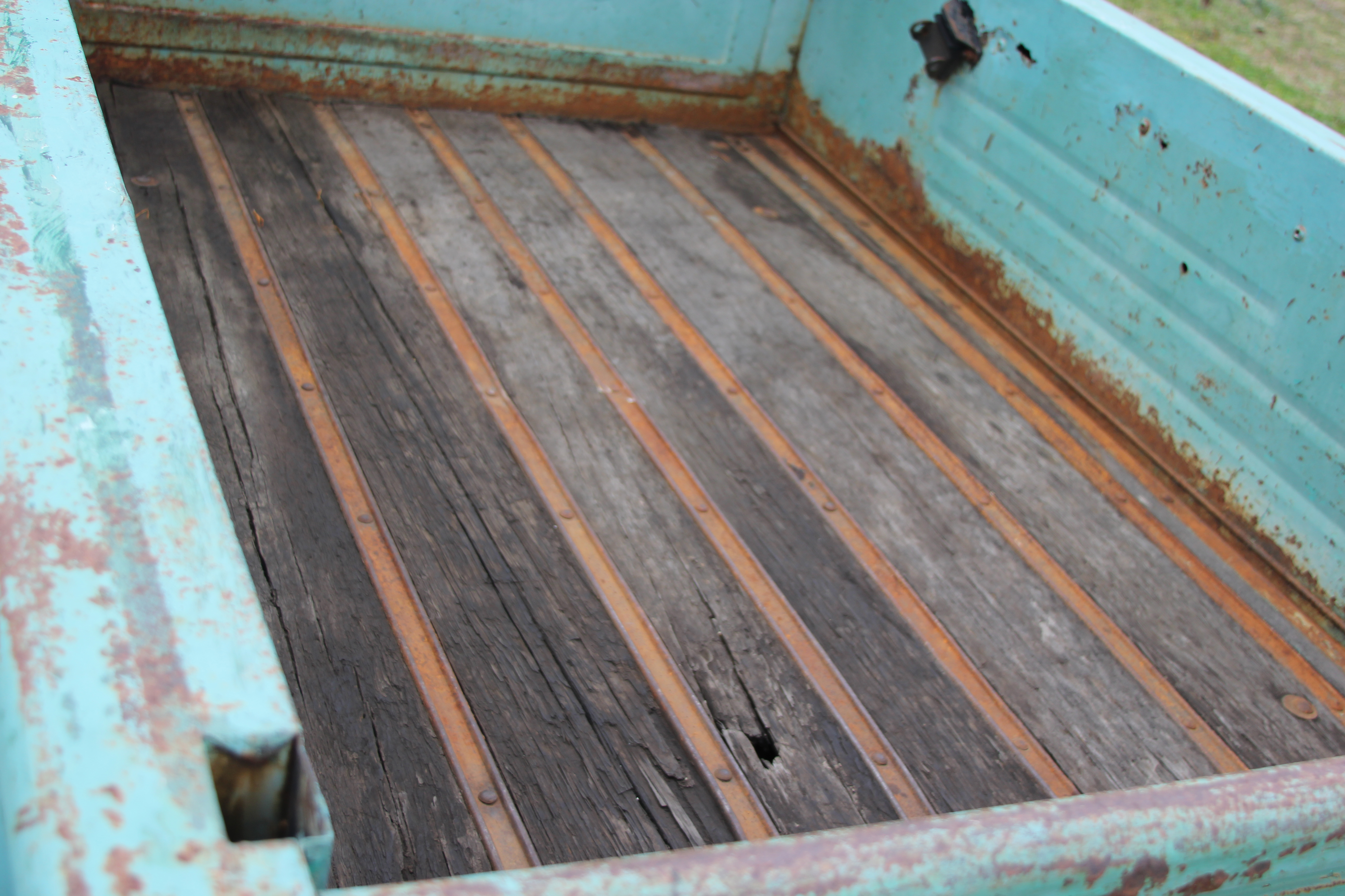 Even from a rust and decay point of view, this truck is relatively solid for a machine of this vintage that spent much of its life being abused. The floors were rusted out and had to be replaced, and there is a lot of patchy rust around the rockers and fenders, but a large portion of this truck is solid. The biggest surprise is the wooden bed, which Dustin says is still original, and it exists entirely because of how this truck was used earlier in its life.