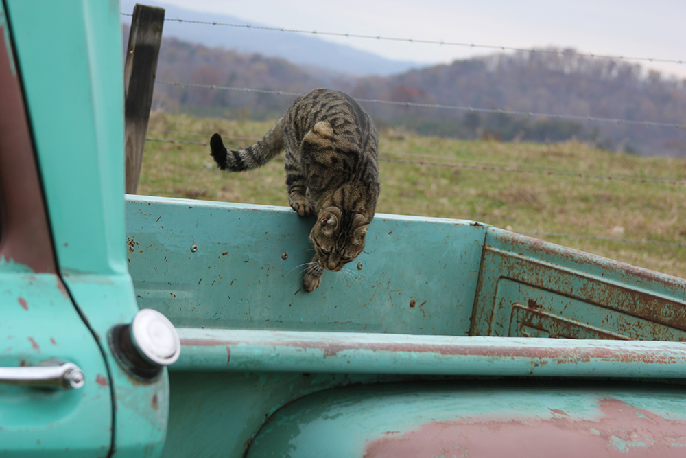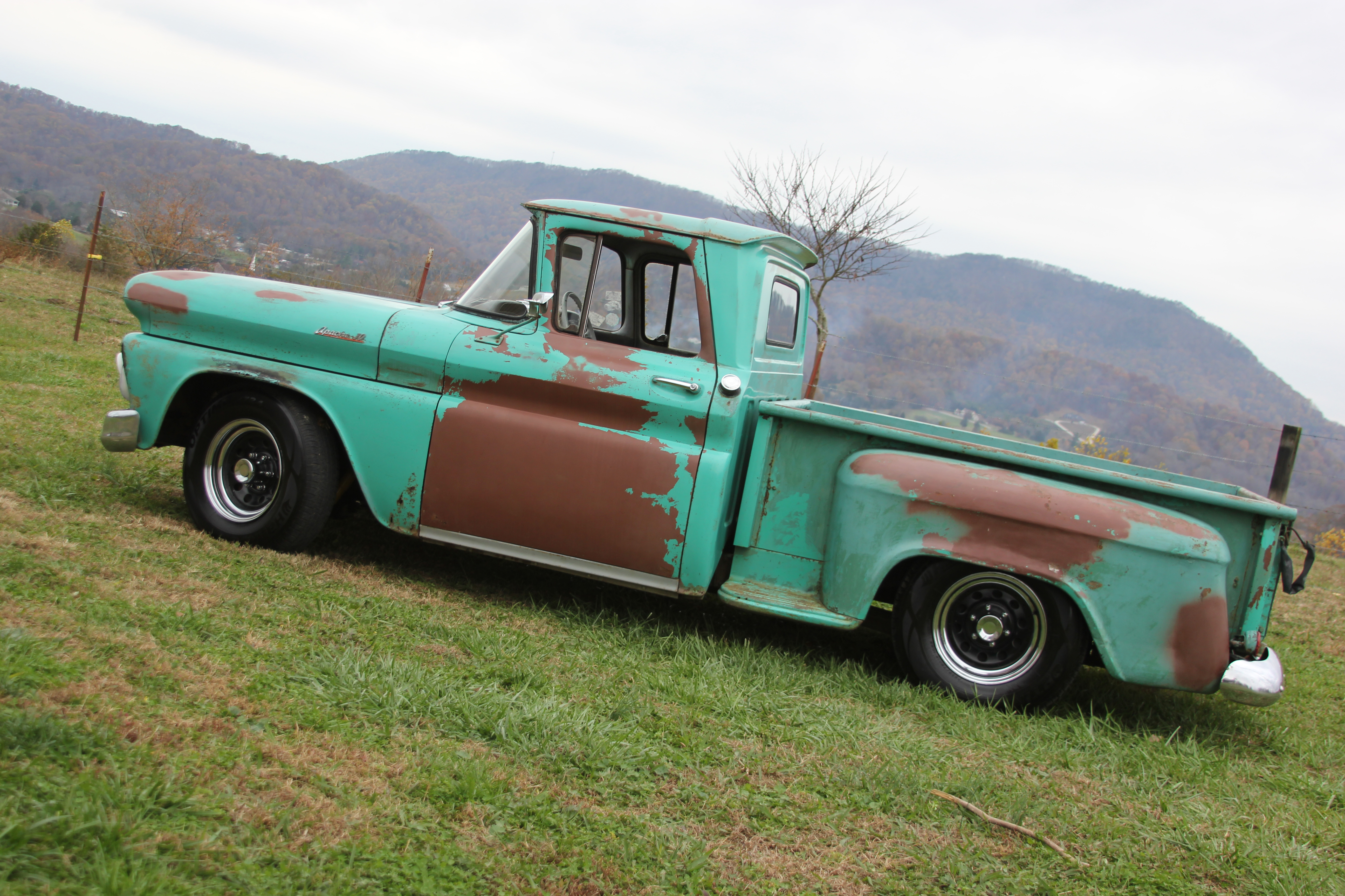 He starts the story with a laugh as he points into the bed. “Look over on the side there. That’s a welded engine mount in the bed. The original owner, he used to haul engines in it.” Years of old motors, bleeding oil into the bed as they were hauled around the foothills of the Appalachian Mountains had given the bed a sturdy and water resistant coating that still holds up today. “That’s why the bed isn’t just rotten completely away.”