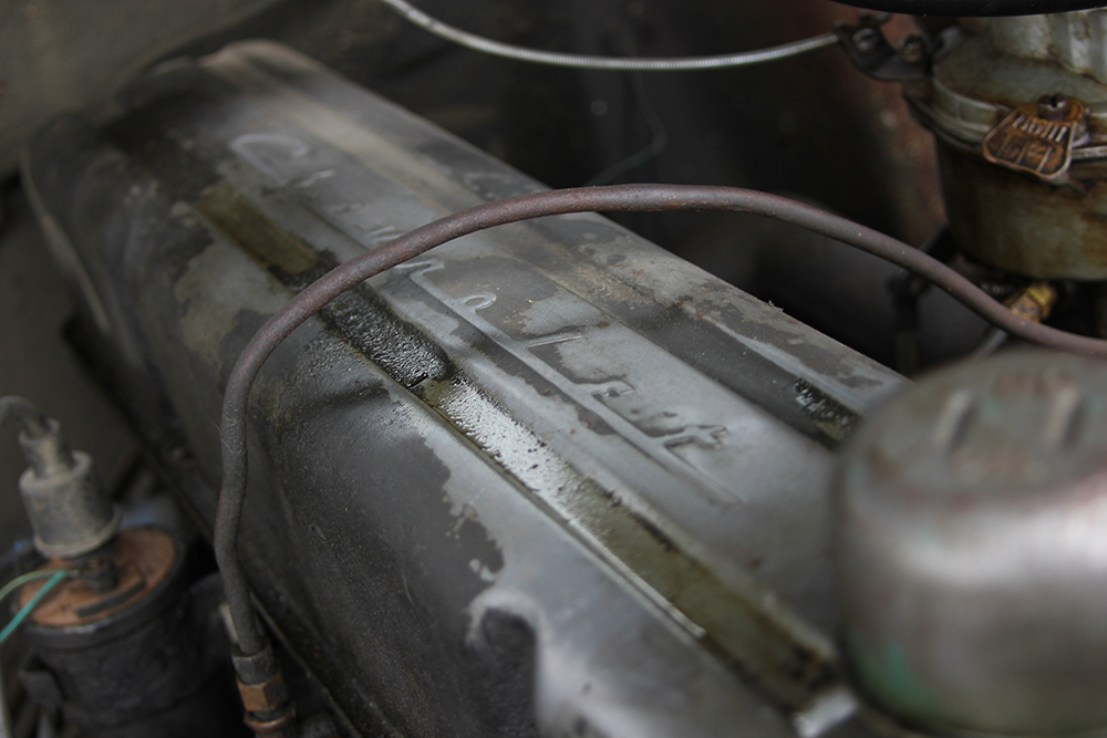 The engine is the original 235 inline-six that it hit the showroom floor with, attached to a three-speed transmission. Last year Dustin finally had to have the carb rebuilt, and he swapped the rear gearing just to cut the engine speed on the highway, but that’s basically the only mechanical maintenance he’s done.