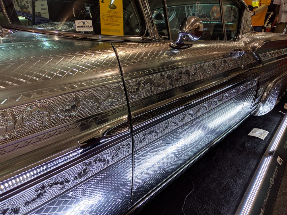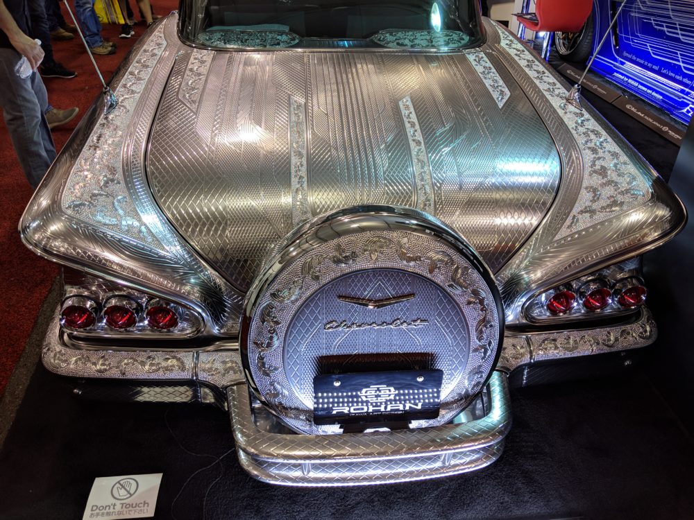 Presented by Kuhl Racing and Rohan-Izawa, this Japanese Impala is the masterwork of custom painter Takahiko Izawa. Every body panel on the car was painted with his special “metal” paint, then painstakingly engraved.