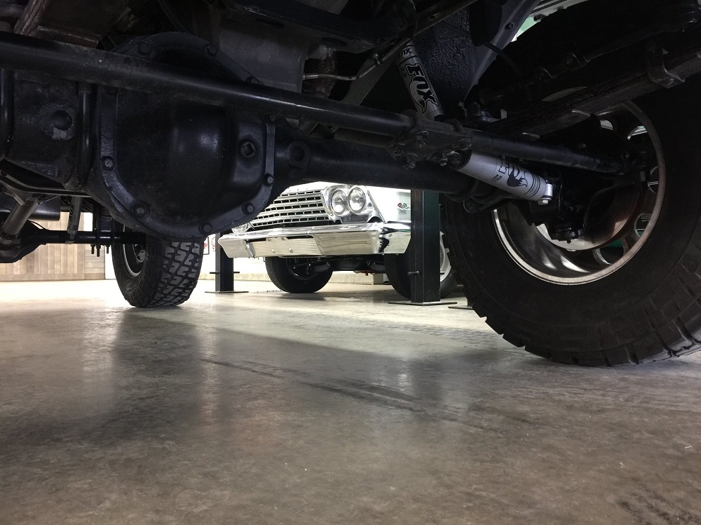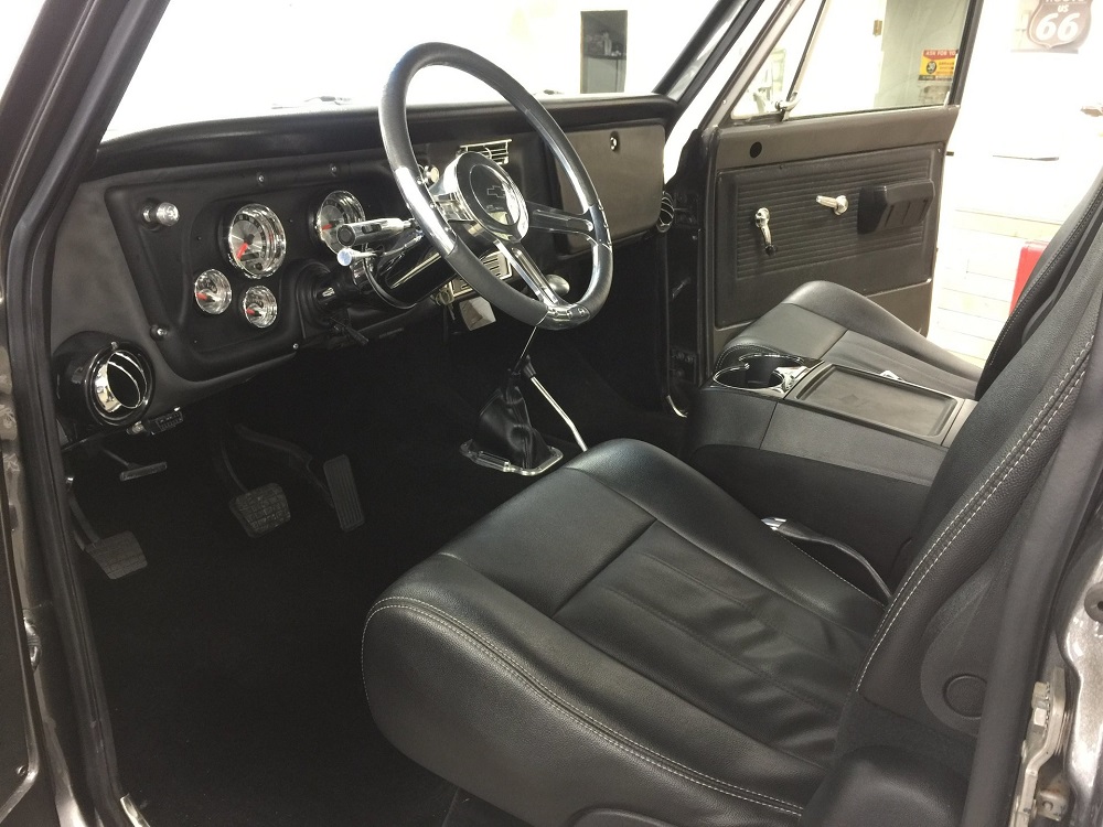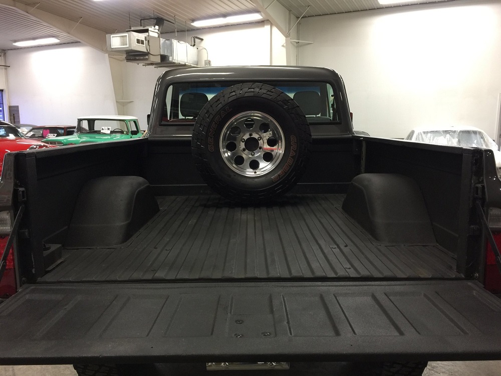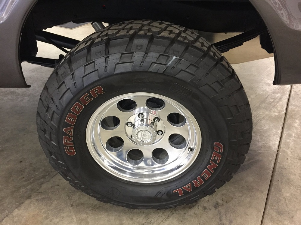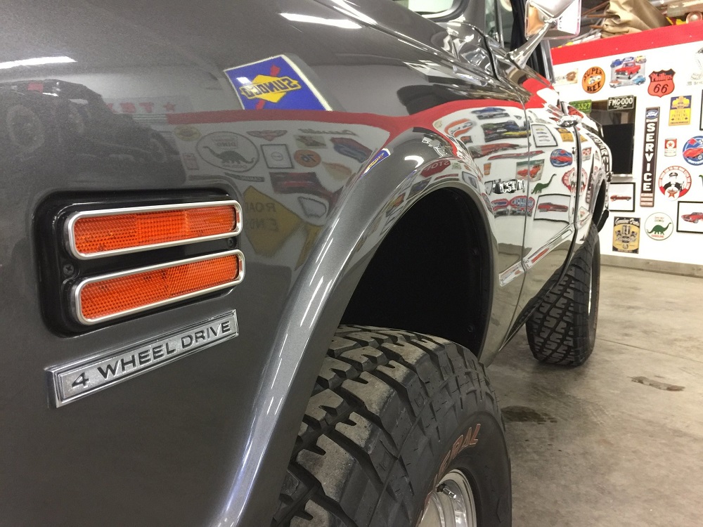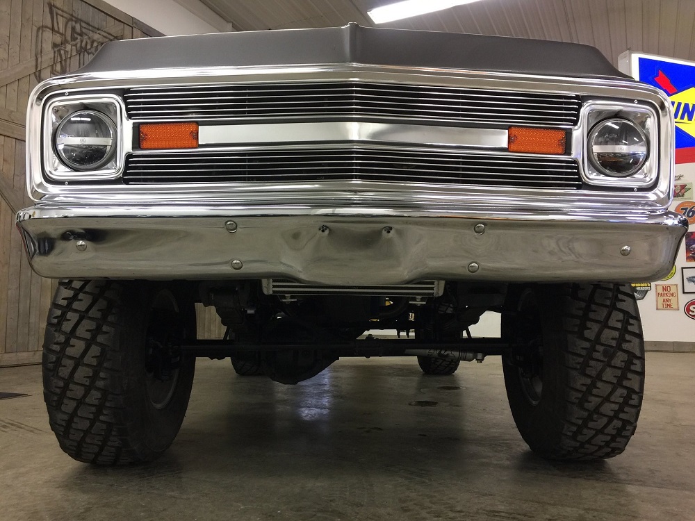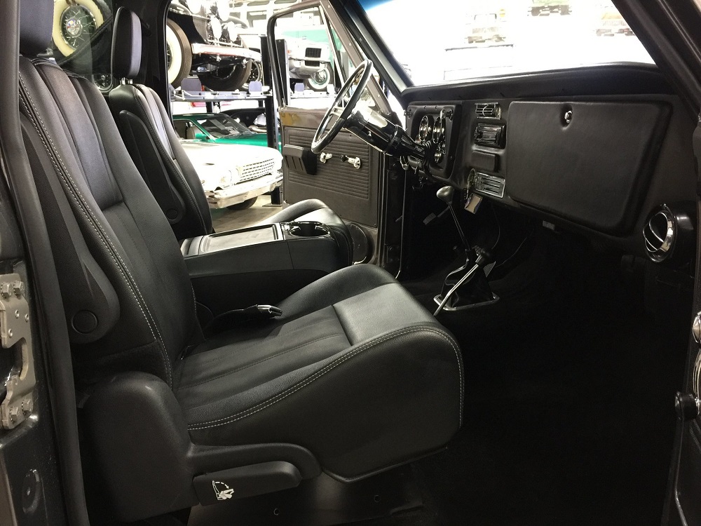 Inside and out, you won’t find any bones to pick. The Graphite Gray paint is pure perfection, augmented by fresh chrome and LED lighting. 17-inch Pro Comp wheels and 35-inch General rubber makes for a classy combo. Inside, blacked out bucket seats and modern instrumentation and audio make cruising around a pleasant experience.