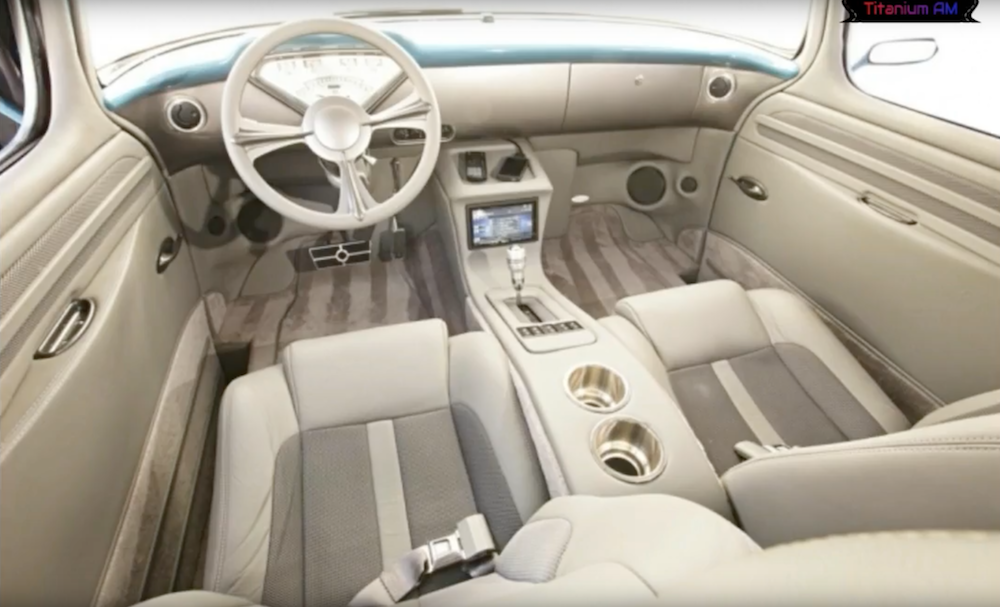After sorting the mechanical aspects of the vehicle out, the team turned towards dealing with the exterior. The rust had to be repaired, two new doors had to be cut out, a custom grille was fabricated, and the bumpers were reshaped, narrowed, and tucked, says Hot Rod Network. The custom interior work followed once everything on the exterior was accounted for, including bucket seats, a custom center console, power windows, an audio head unit from Kenwood, and headrest-mounted DVD screen.