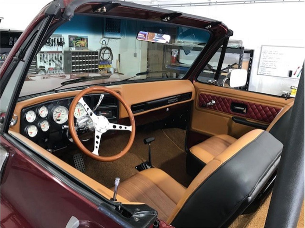 A fresh crate 350, dyno rated at 330 hp, powers this K5 Blazer beauty. With ceramic headers and MagnaFlow exhaust, we’re guessing it sounds just as good as it looks. And as you might imagine, this thing drives like a new truck too. Everything underneath is brand new, from the Rancho shocks to the poly bushings to the ceramic disc brakes. Clearly, budgetary constraints weren’t a consideration with this build. And now, it’s going to make a fantastic show and go cruiser for one lucky person!
