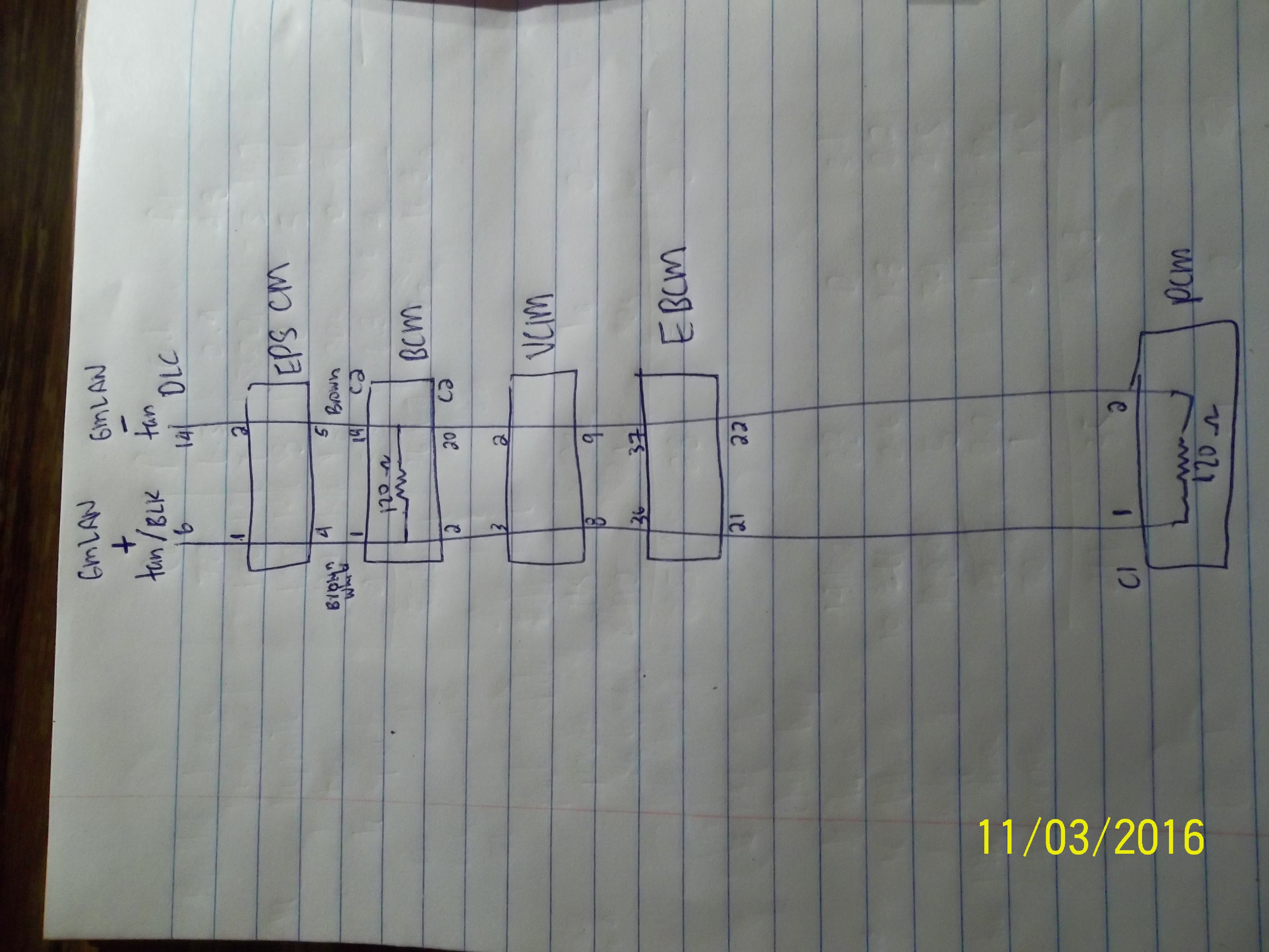 can you confirm what all data says for which modules house the 120 ohm terminating resistors? My info says its the pcm and bcm. maybe its the epsm and pcm?
