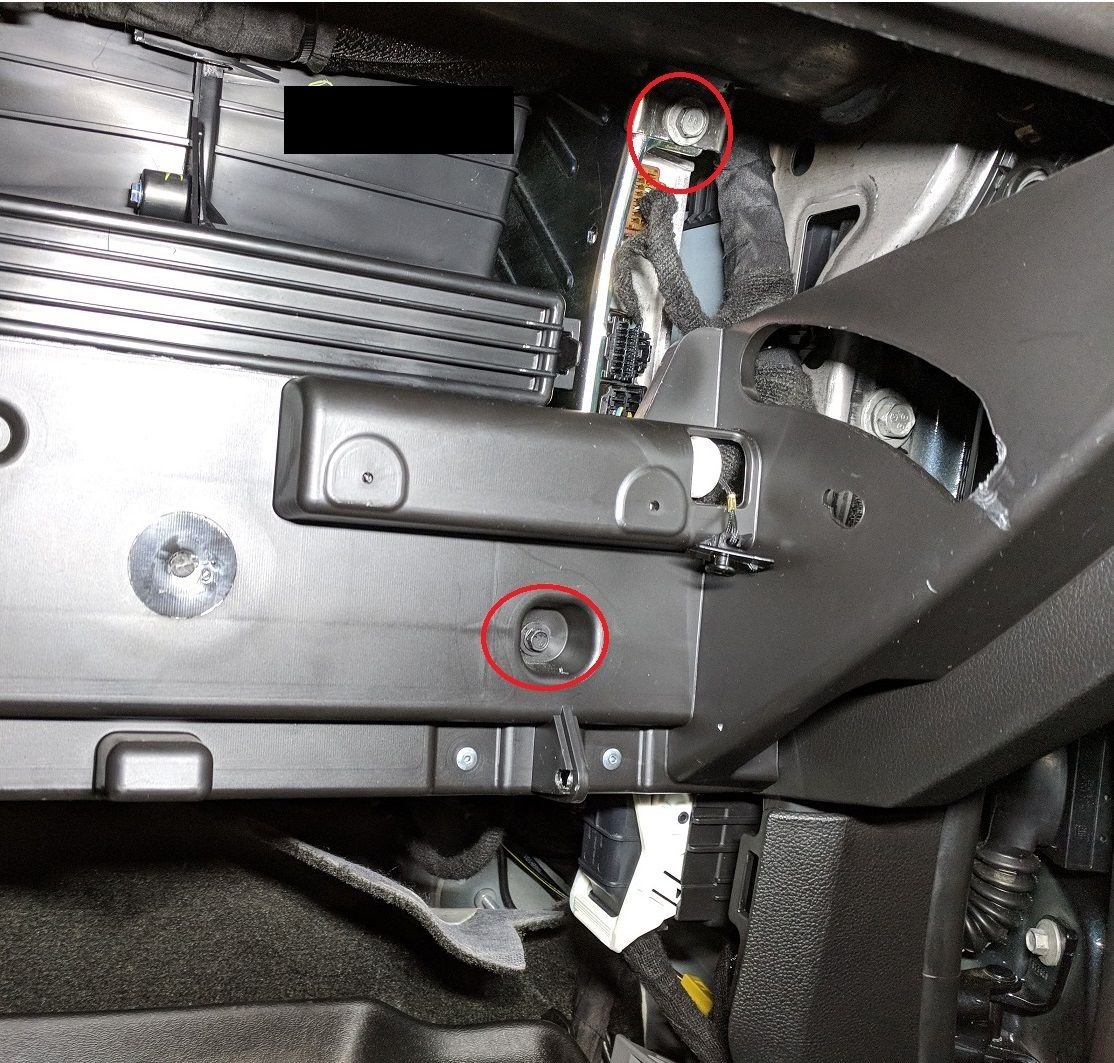 Step 2: Remove plastic covers. First there's a plastic panel that is held in by 5 screws (star bit needed), and 1 plastic push lock. Second plastic cover is the fuse bot cover. There's one fat thumb plastic screw on the back floor piece, then pop the plastic out, pulling inwards from the furthest back is the easiest if memory serves.