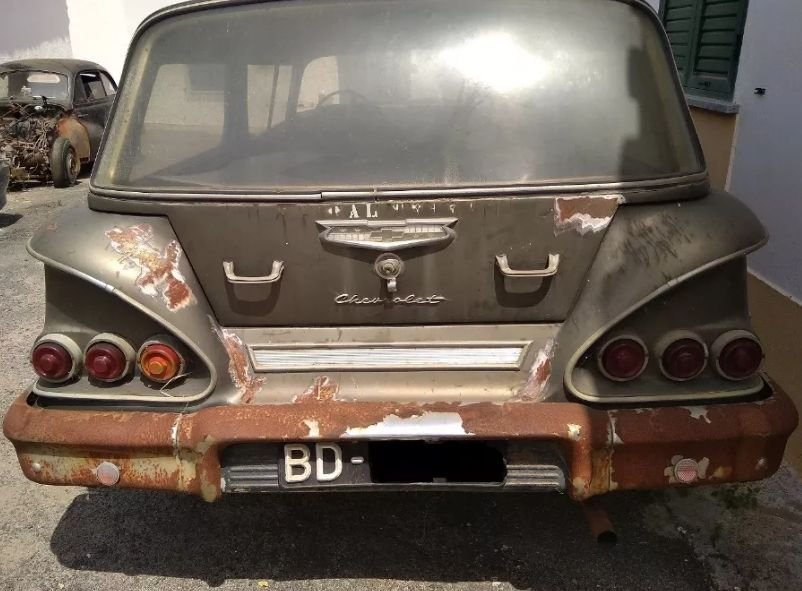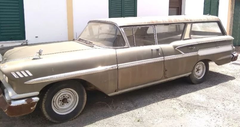 how can you say "while trekking the vicinity of a small town some dozen Kms from Lisbon, Portugal, I stumble in this semi-rusted derelict vehicle laying abandoned and decaying." while in all reality you took the pictures directly from another website https://www.olx.pt/anuncio/chevrolet...n-IDCAtze.html on that website it states its a chevy BELAIR SPORT
