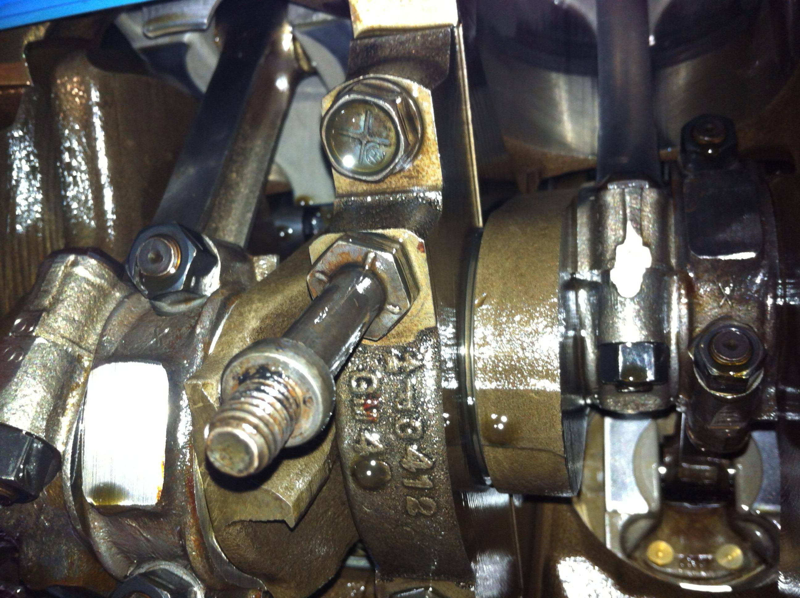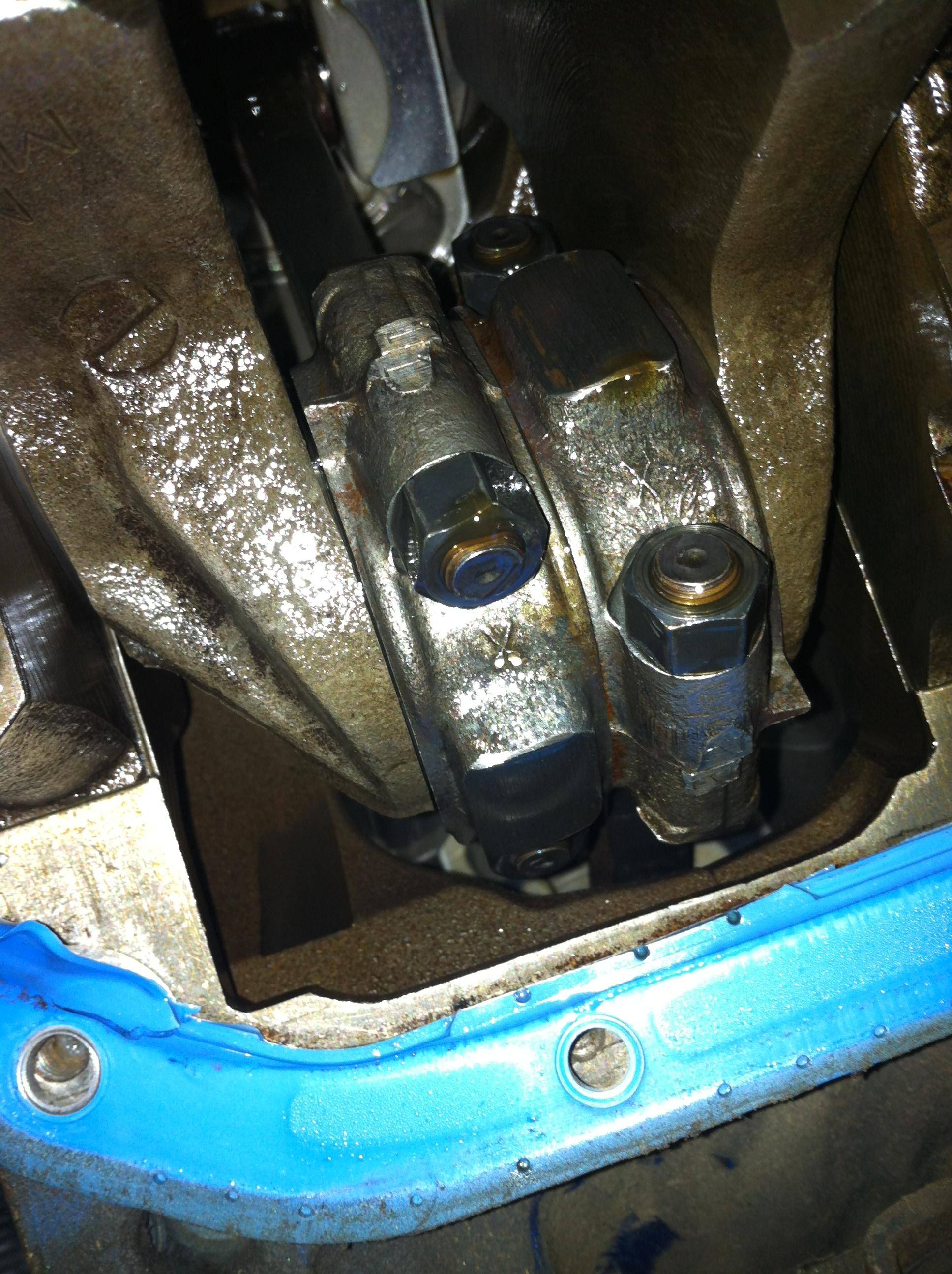 This weekend I pulled the oil pan so I can replace the rear main seal and oil pan gasket and get a peek at the bottom end.