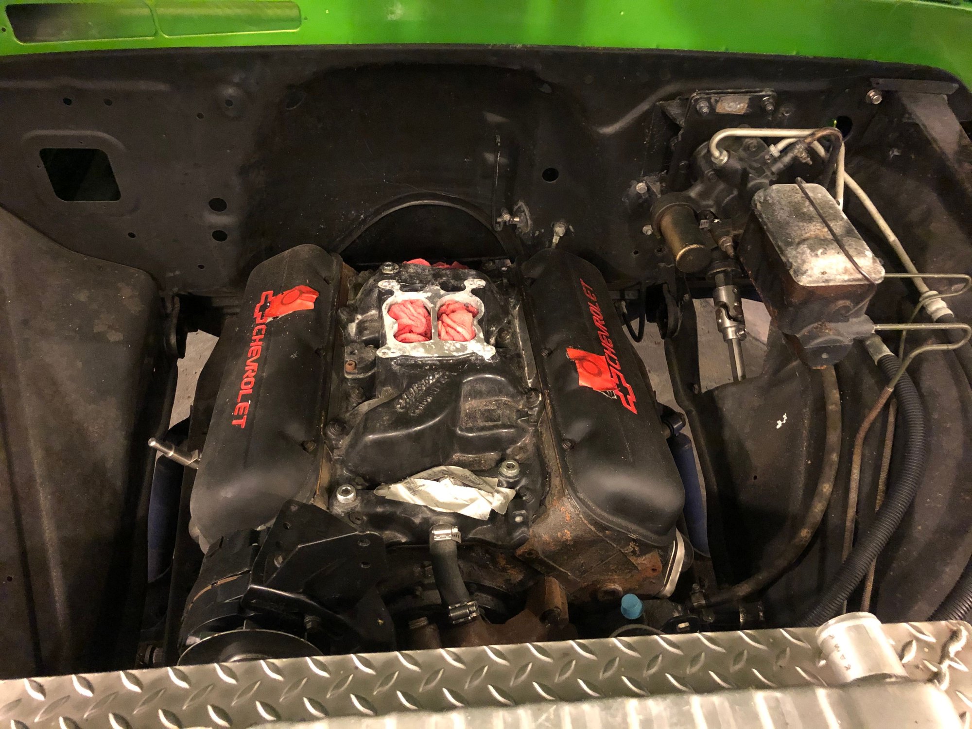 454 big block, all the parts for reassembling and then some custom stainless steel work. Roof rack, drop down interior bed, gas tanks