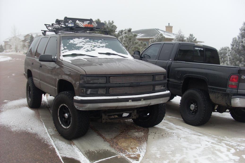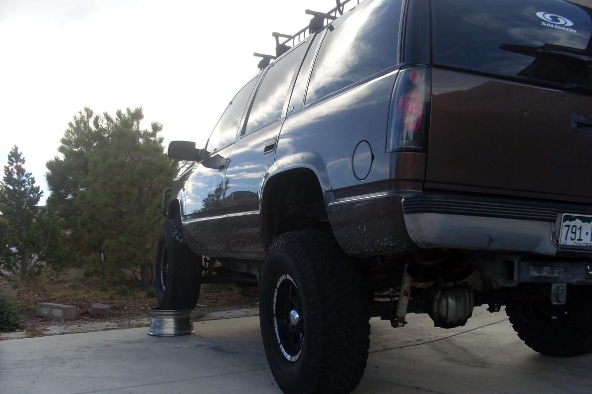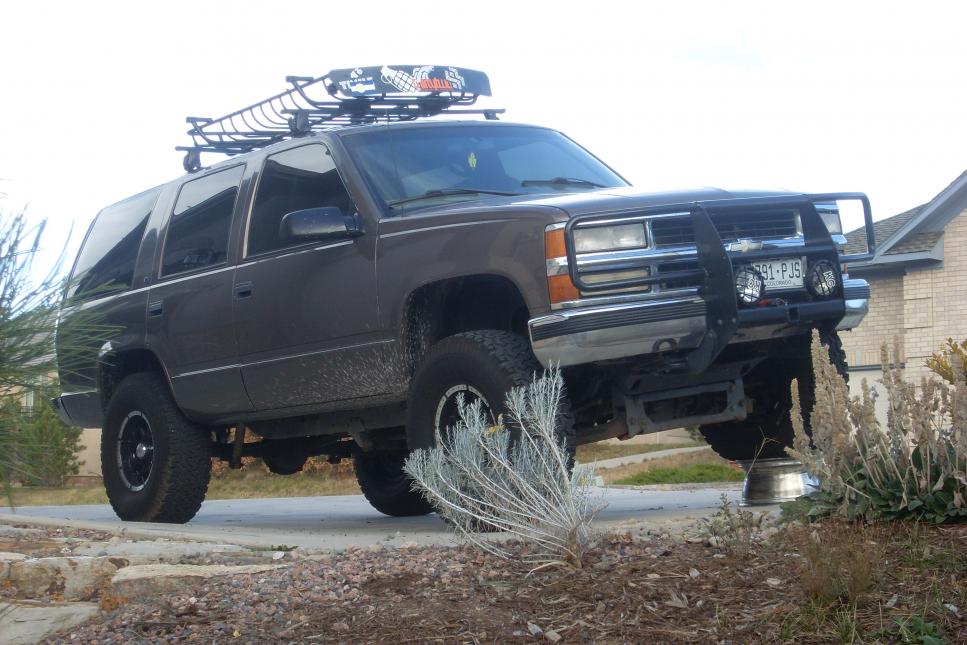 i have had my tahoe for almost two years its a 98' 4 door 4x4 new engine installed by chevy has about 18,000 on it now just replaced the tranny about 10,000 miles ago...eventually want to do an SAS, rear gear, and lock front and rear but may take some time...well this looks like and awesome site with lots of info so here are some pics of the hoe: