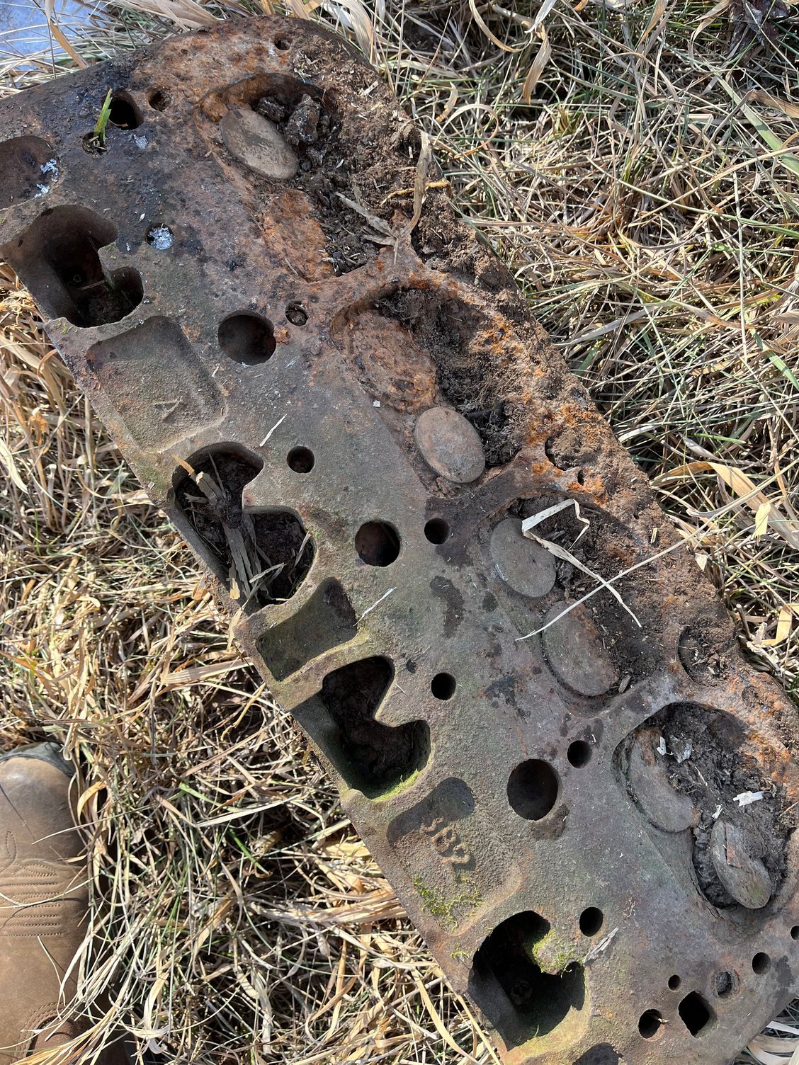 I think…? the engine is a V8, but the dirt around it is frozen and I haven’t been able to dig it out further yet. The number on it is 6GM3970010 and it has some numbers on the side. Guessing there might be more identifiers under the dirt. My brother and I were guessing it might be a Chevy of some sort, so I thought I’d try and see if anyone here might know.
