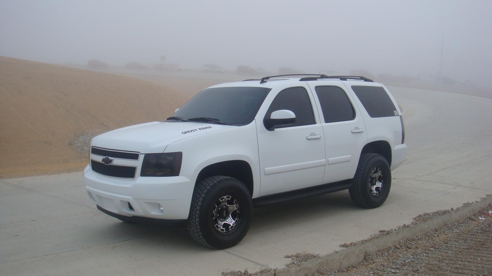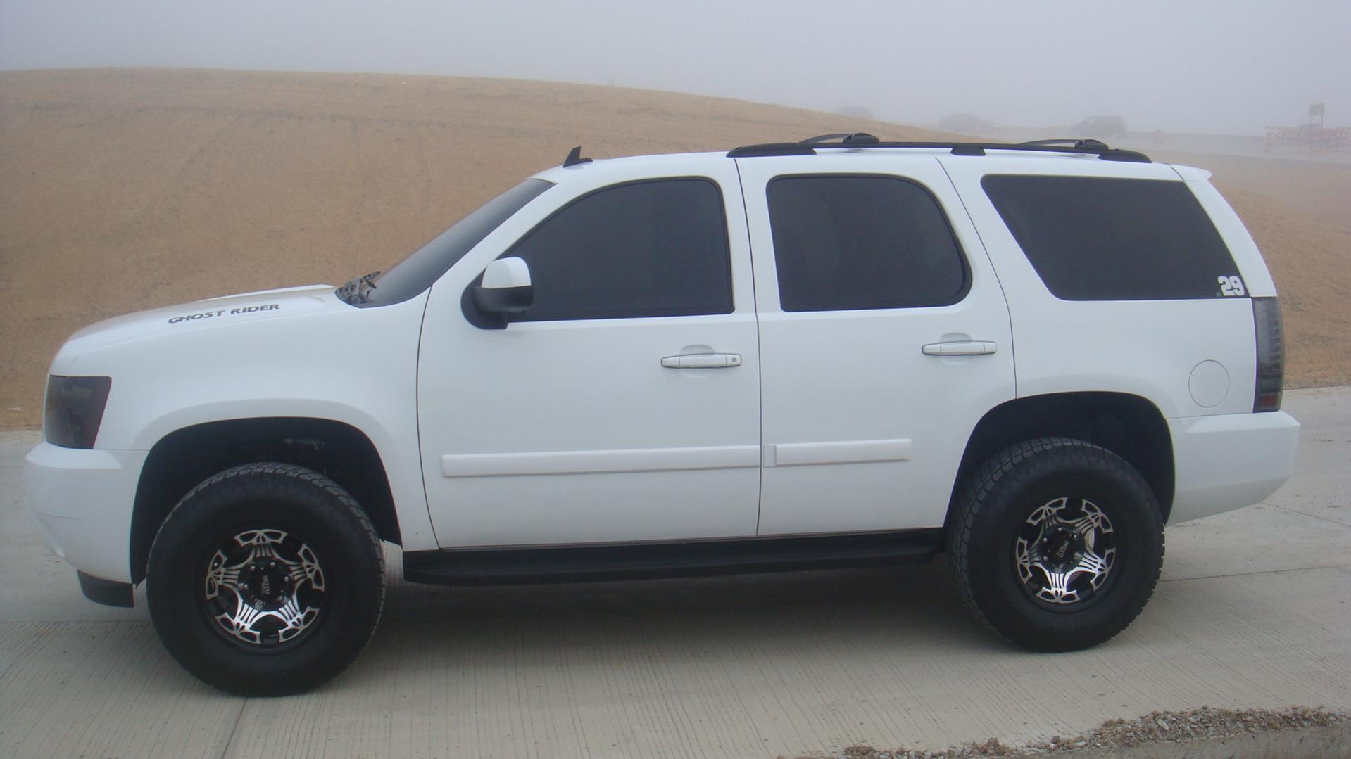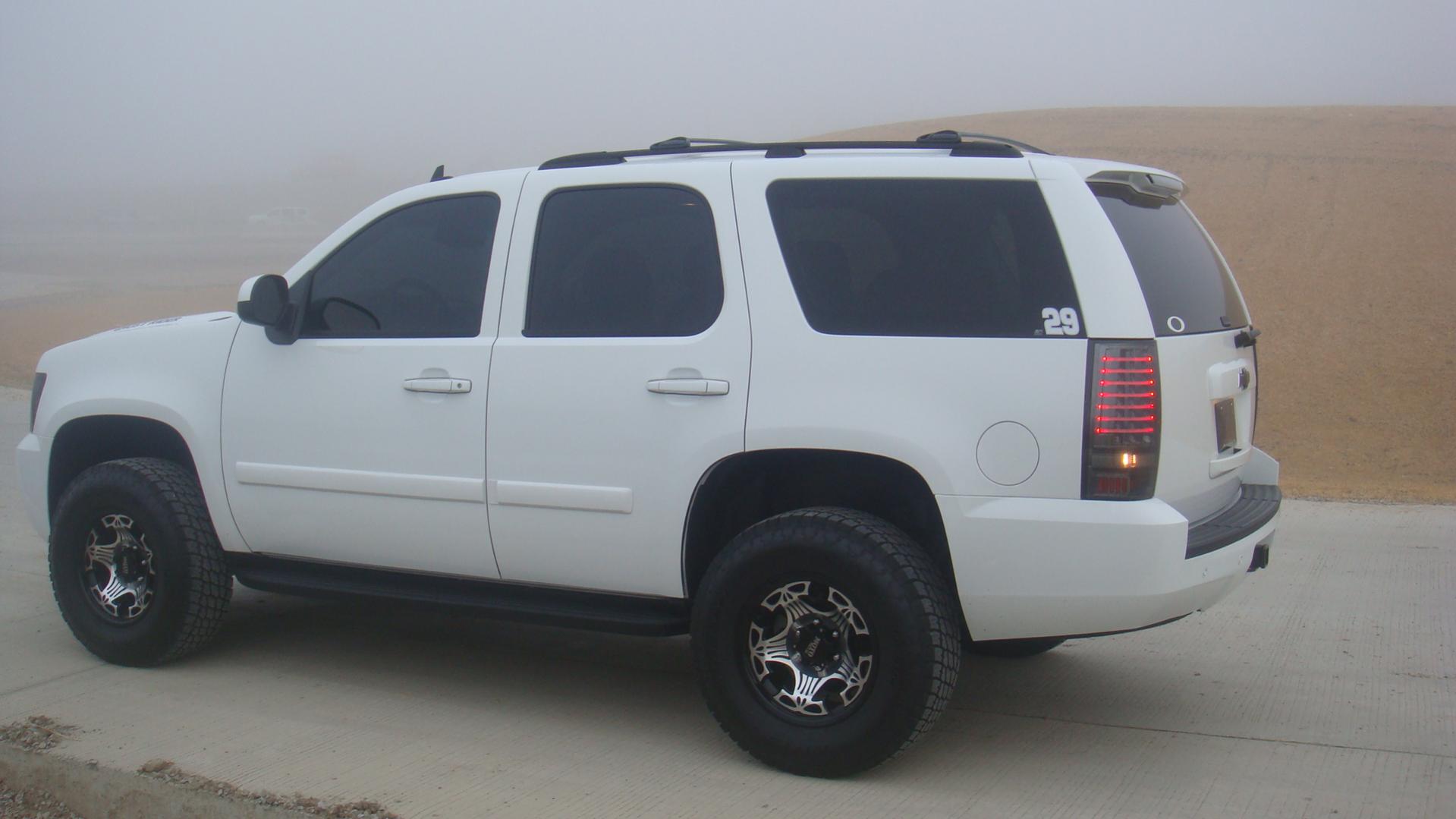This beast is an '09 Tahoe with a suspension lift by CCM Offroad. It has the full tint package from nose to tail, even the windshield. The tail lights are led/fiber from Redlines. The wheels are MO909 Punisher's wrapped in a 33" Nitto Terra Grappler. I tinted the headights and blacked out the emblems myself with vinyl. This is just the beginning. I am still waiting on more parts to arrive which will upgrade the exhaust, headlights, and intake.