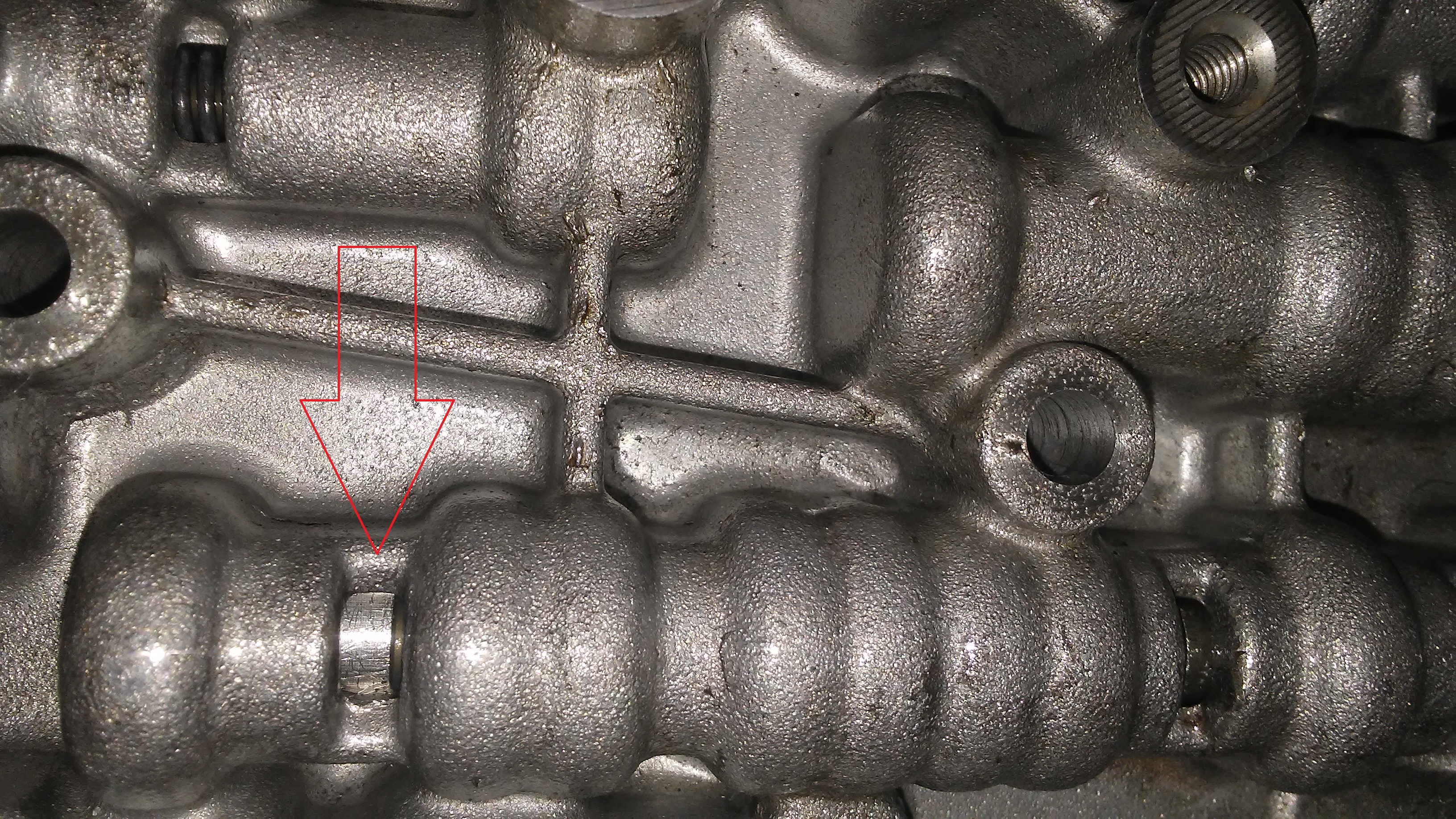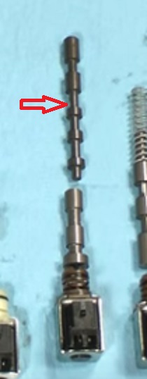It has a 4l60e transmission. I had to replace the Pressure Switch Manifold and that went fine. I decided to remove the valve body and clean it out. I removed the solenoids and the valves and cleaned everything with Mineral Spirits then blew it out with compressed air. I am having a problem getting the valves used for the 2-3 Solenoid Shift back to the end of the bore. The 2-3 Solenoid Shift consist of *2-3 shift valve*, *2-3 shuttle valve* and the *solenoid*. The 2-3 shift valve goes first into the bore. It goes all the way in the bore but gets stuck about 1 inch before the end of the bore. I have removed it and blew out the bore with compressed air several times and it is clean. I do not know why it will not go all the way back in. I am thinking that the inside of the bore may have been damaged when the valves were removed but I cant tell. I uploaded 3 photos. 1 is of the entire Valve Body with a red arrow pointing to the 2-3 Shift Solenoid and where the 2-3 shift valve is stuck in the bore. The 2nd photo is a close up of the 2-3 shift valve with a red arrow showing where it is stuck. The 3rd is a photo of the 2-3 Solenoid Shift ( valves and solenoid) before installation and there is a red arrow pointing to the valve (2-3 shift valve) that is getting stuck. Any one have any suggestions?