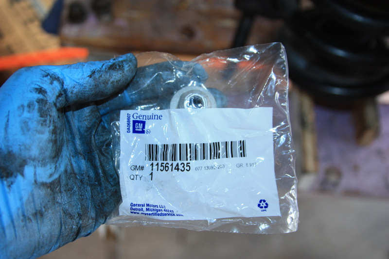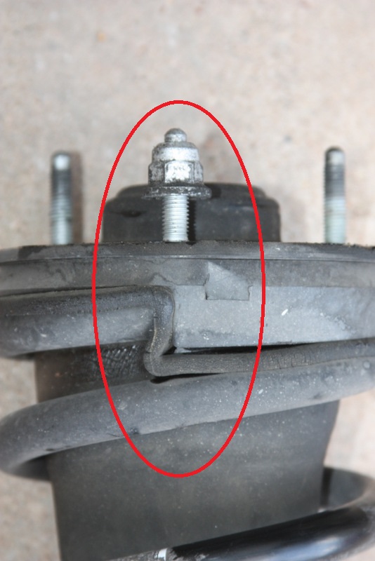 12-New installed and torqued down, I attached all 3 top nuts first then used a open end wrench to wedge bottom of strut back onto lower control arm, installed 2 bolts.