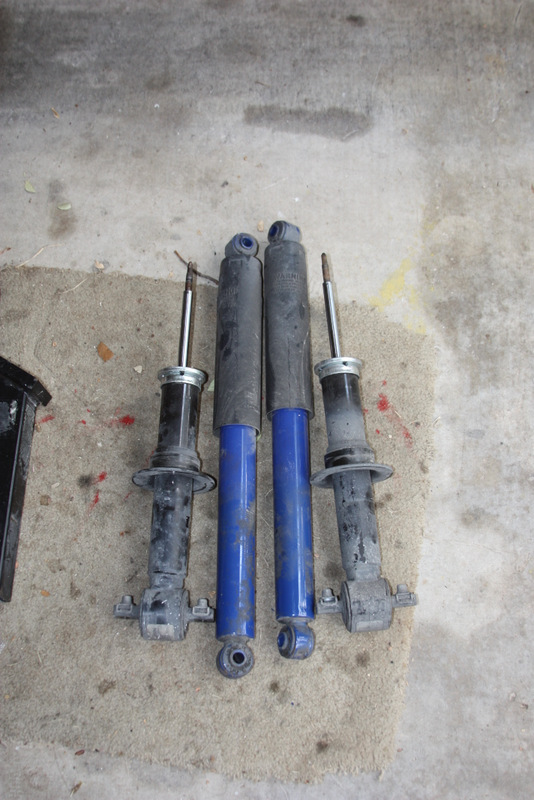 Quick struts are on. Went with monroe rears as well. The reflex ones. Definitely rides better, had somebody instal them for us. Family friend. Did front and rear shocks, plugs and changed out all fluids. Front struts came with black springs. Looked like paint not totally sure. Time will tell if they are any good.