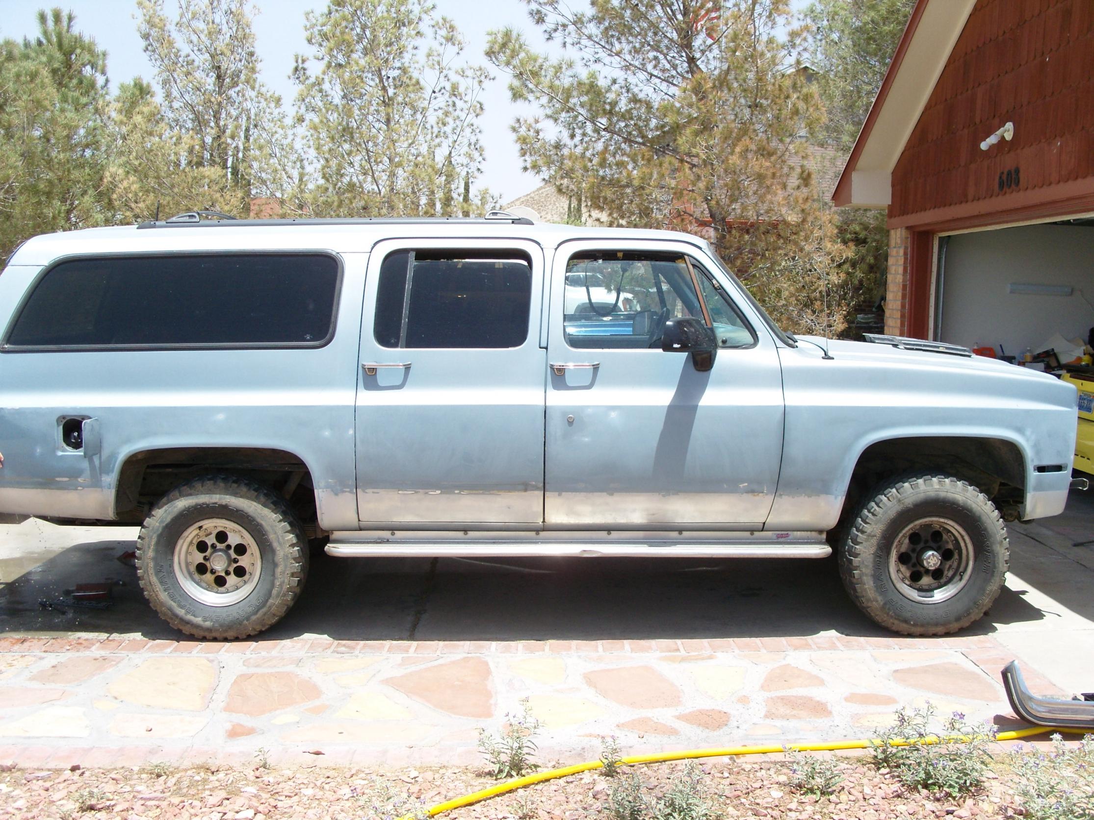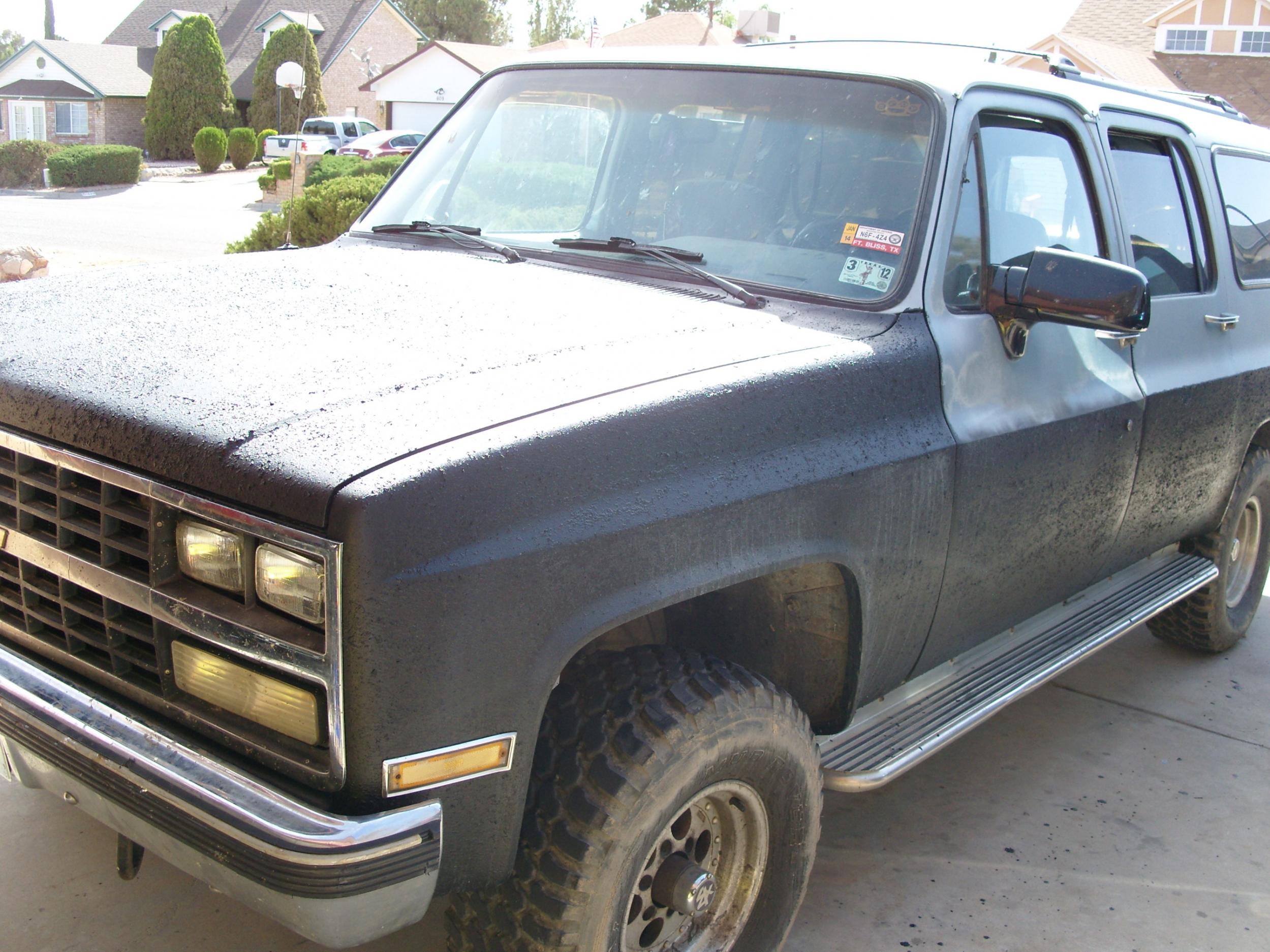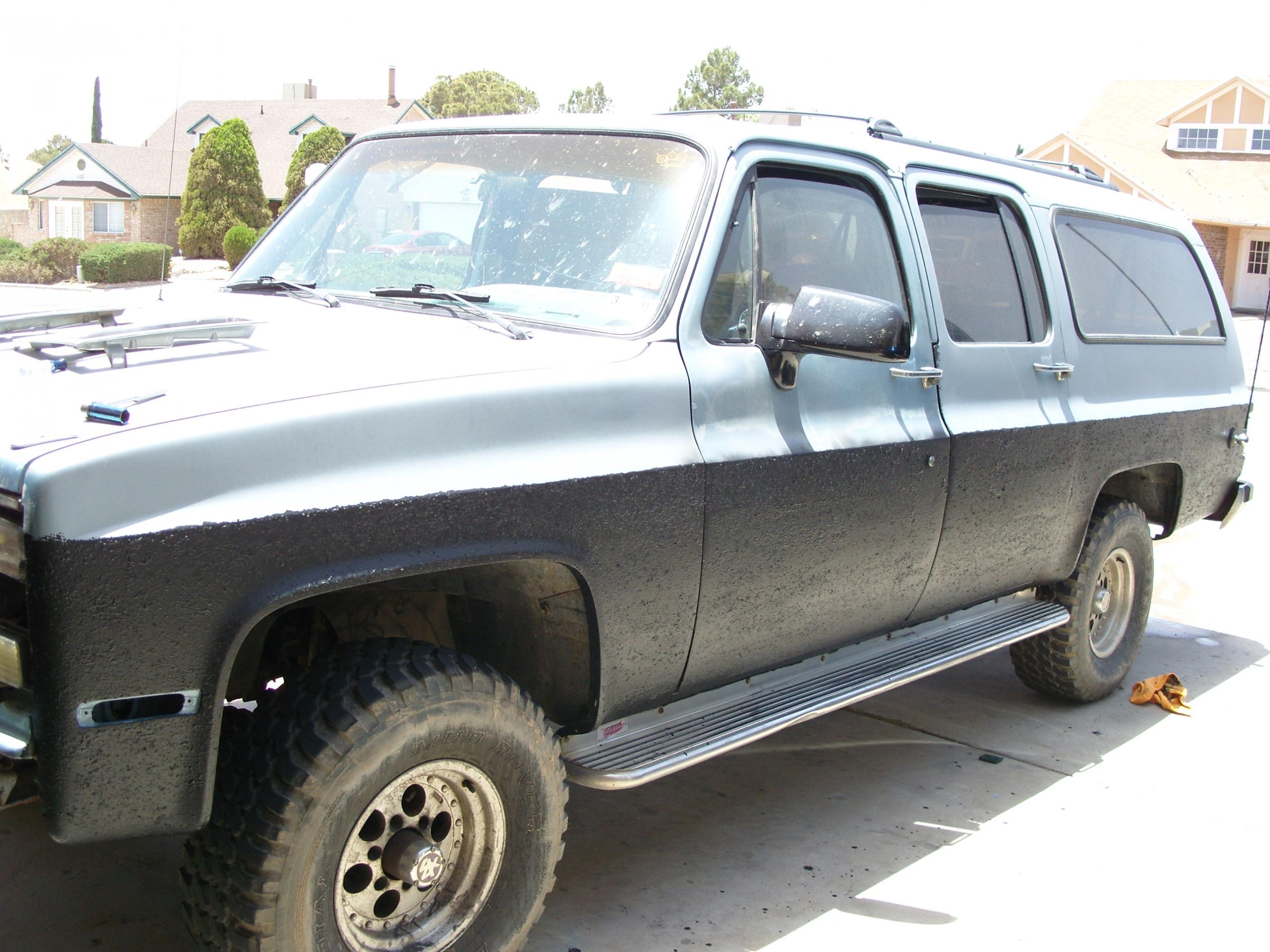 Well I am new here, I have had my 1990 1500 Burban for a few months now, and LOVE it. I Rhino Lined it myself, desiding whether or not to fully line it or leave it the way it is. I hang out with alot of Jeepers and they call it the Land Yacht, and laugh at me for bringing such a big truck out to the trails until they need to get pulled out lol.. But its a great truck runs AWSOME. Getting ready to lift it 6-8 inches and going to run 35s-37s on it. Well here are some pics of it, Will keep posting the new pics as they come in. The only thing missing is these pics are the KCs i just put on it. Thanks for looking, and hope to find some good new ideas on here to do to my truck.