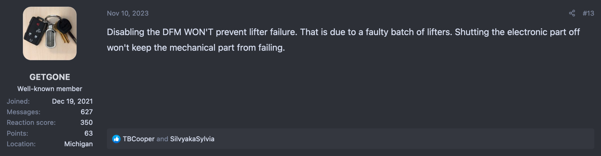 Oh man what did I get into LOL... well from what I am reading online the biggest issues is the AFM or DFM - L86/L87 is the main cause of these major engine issues.
