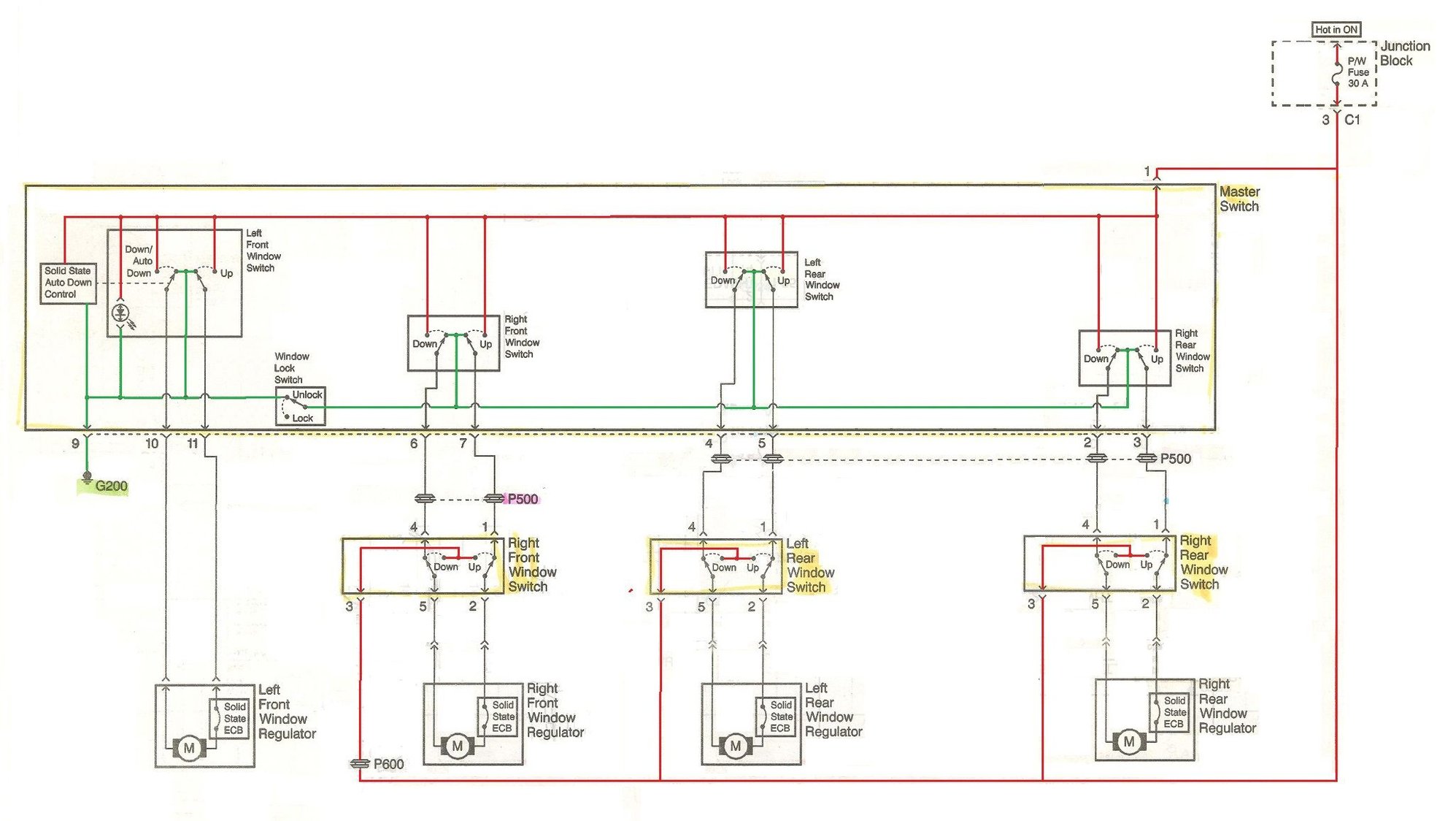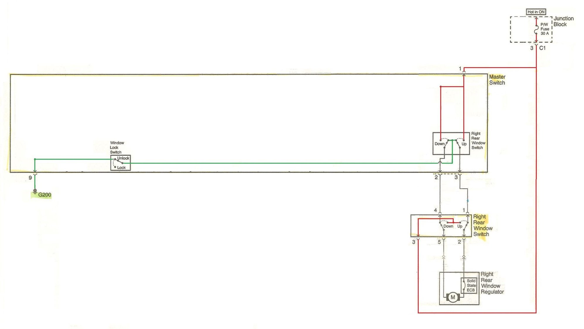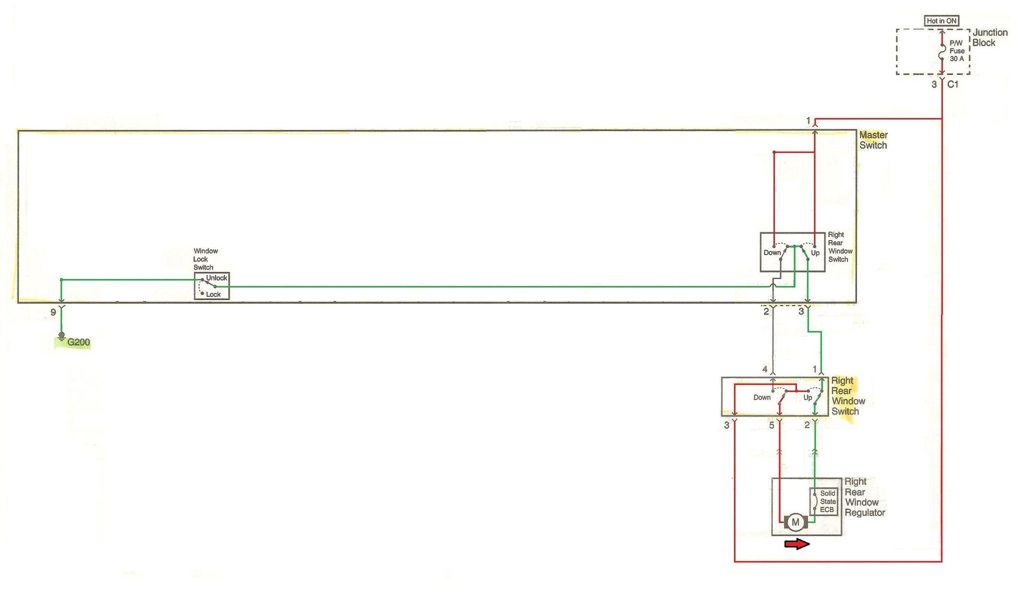 Isolate the diagram to just the right rear set of window switches.
