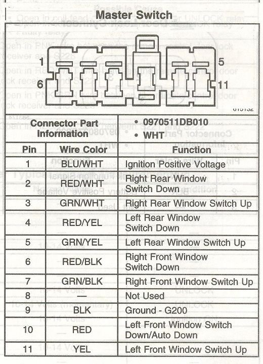 This is a simplified drawing of the power window switches on a 4-door Tracker.