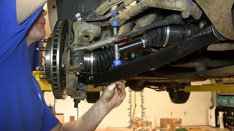 - Now remove the stabilizer link from the lower control arm. If it refuses to come out, you may have to cut off the stabilizer link shaft with a reciprocating saw.