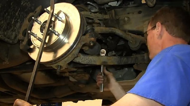 - Don’t remove the nut, but leave a large gap between the nut and the wheel knuckle.