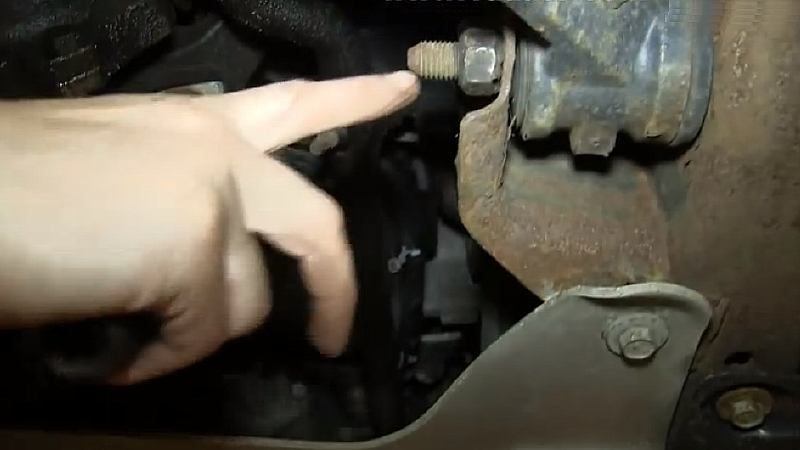 The vehicle’s front end needs to be raised for this operation in order to relax the suspension; otherwise, the bolt will strongly resist being turned.