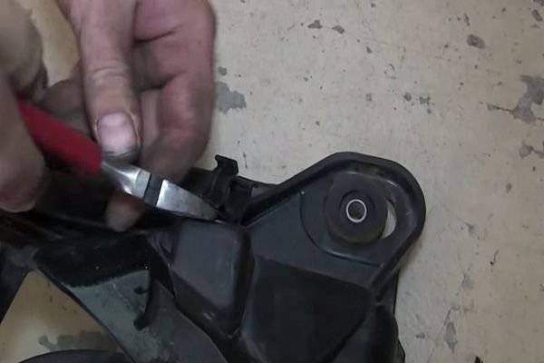 - Attach the radiator hose and c-clip. Then, secure the grommet.