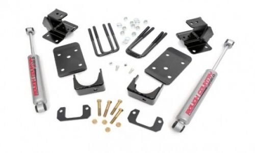 Mcgaughys lowering kit includes 2" front drop spindles, front adjustable coil spring mounts, a rear flip kit, rear lift hangers, and rear shock extenders. They recommended you purchase the 2050 rear shocks. Recommended if you're looking for an adjustable kit with great warranty.