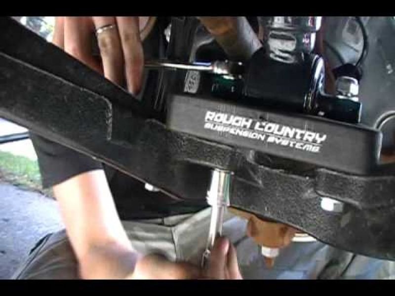 - If your kit included front strut spacers, install those between the strut and the lower control arm. The rough country kit has you move the strut below the lower control arm then placing a spacer between the strut and lower control arm. Some kits may require modification before this is completed.