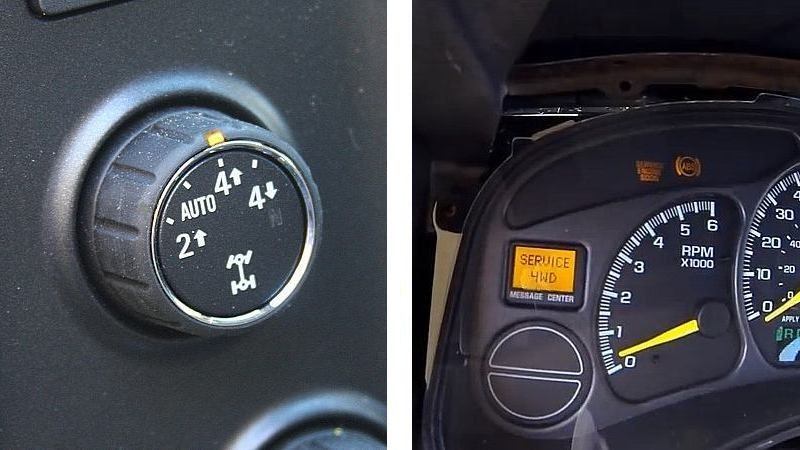 Don’t ignore the behavior of the controls used to put the Silverado into and out of 4WD, as well as related IP warning lights.