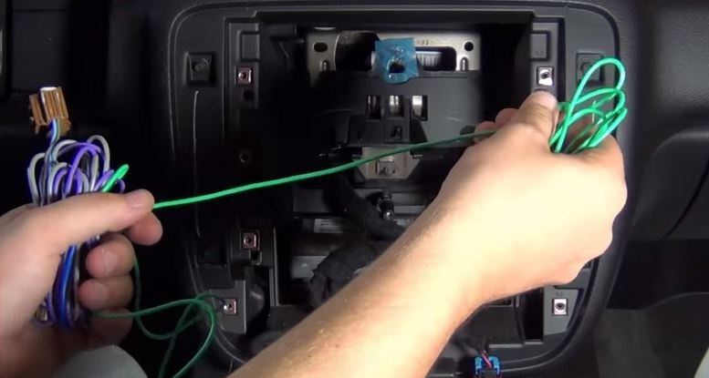 - Plug in the wire harness connector (from the green wire) to the back of the new navigation system unit.
