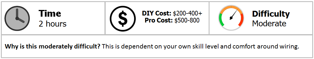 As a disclaimer, if you feel unsure of any of the instructions given, feel free to ask in the comments section for clarification. If you're too shaky, there is nothing wrong with paying a professional to install.