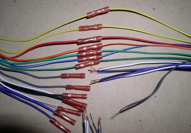 Soldering is a bit tricky at first, but once you get comfortable working the solder with the heat source, it's pretty painless. This step requires that you follow the instructions provided with your stereo kit, as the harnesses can differ from brand to brand. Match the requisite wires up and solder where needed. Once the wires have been soldered and the solder has hardened, protect your handy work with butt connectors. Some wiring connections may be able to operate fine with just the connector and no solder, but where possible, take the extra few minutes to ensure a better connection.